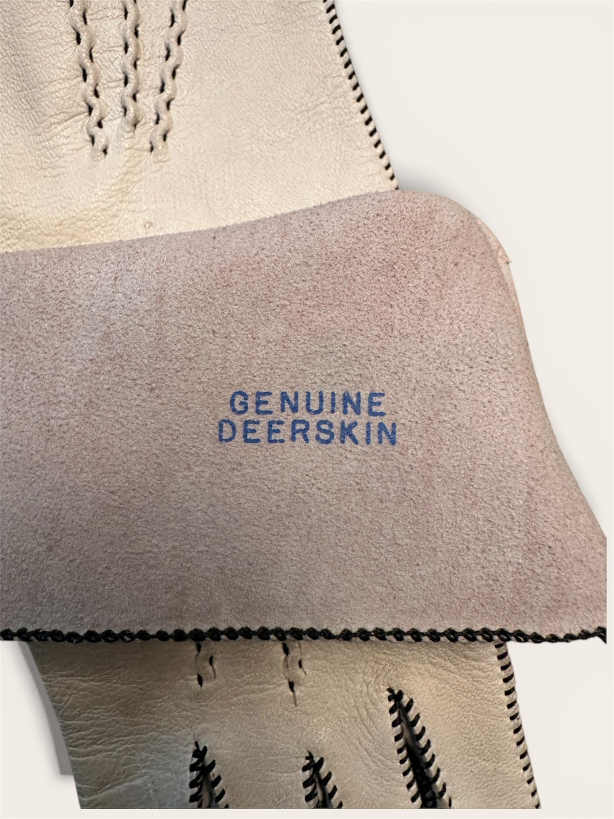 VTG Ladies Deer Skin Leather Gloves Size 7.5 Beige w/ Brown Whip Stitch