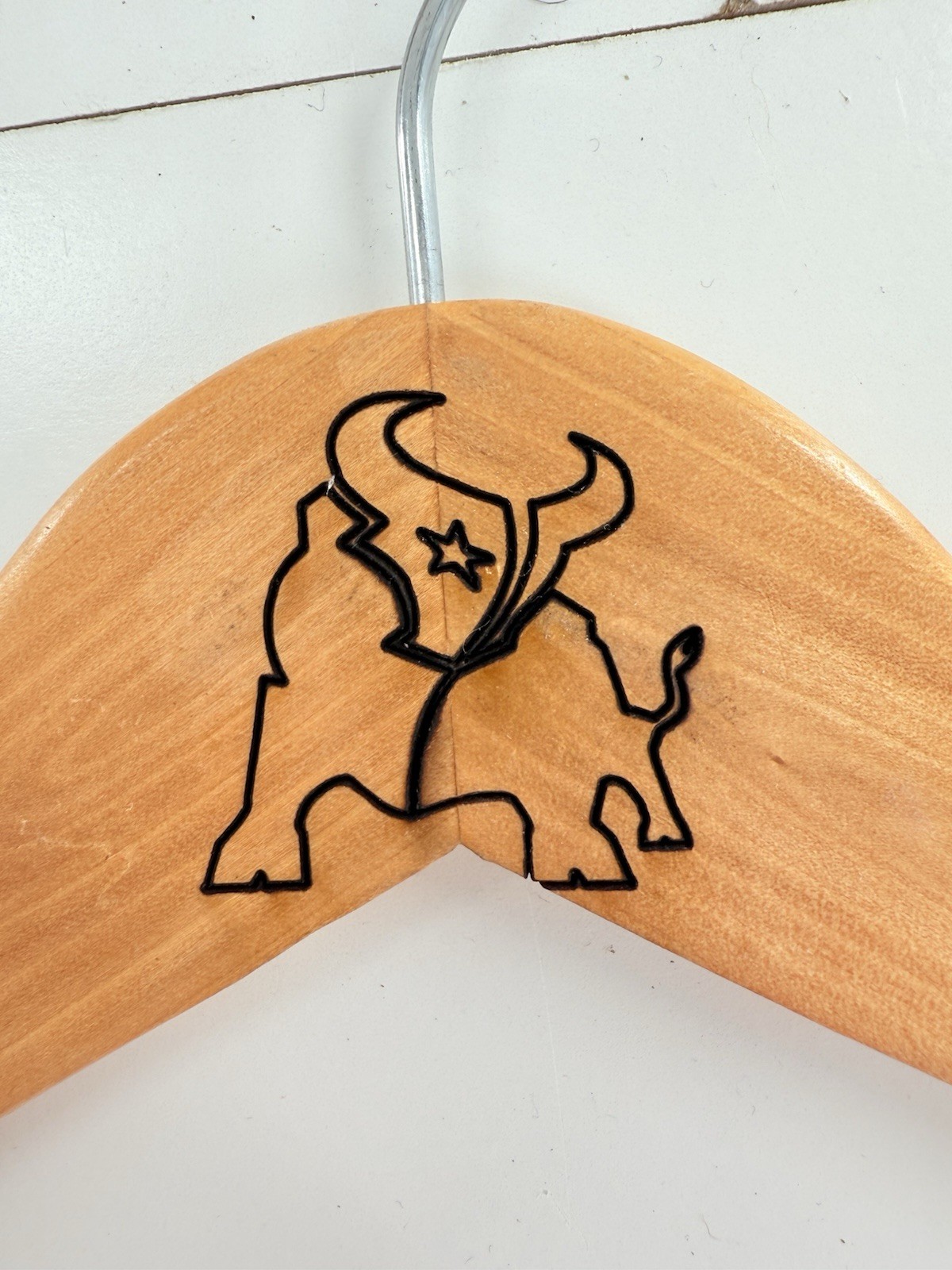 как выглядит 5 Custom personalized wooden hangers featuring the Houston Texans logo and name фото