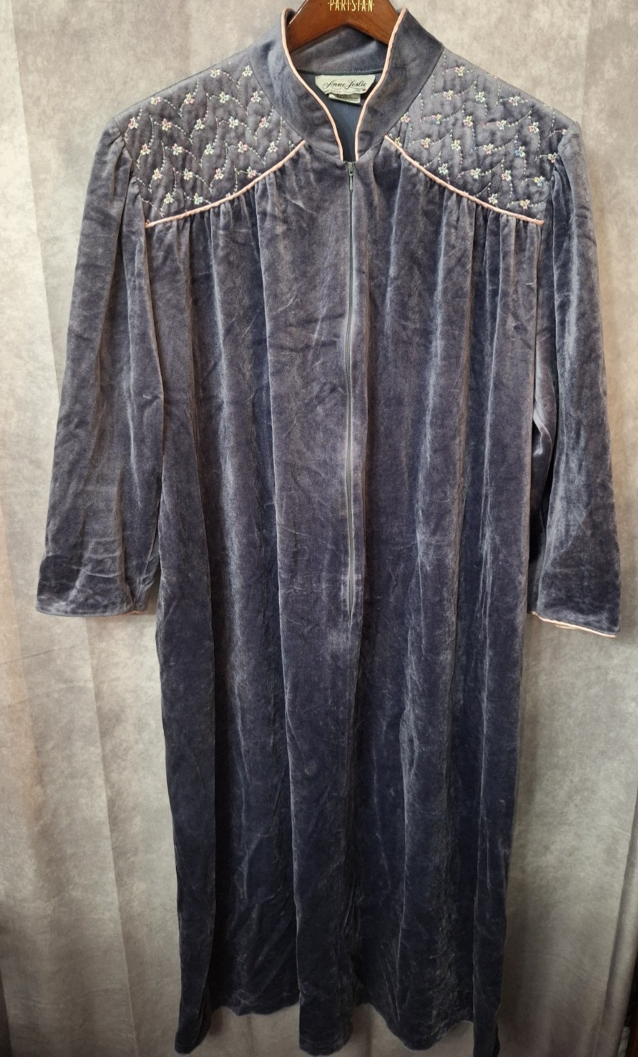 Vintage Velvet MuMu House Coat Robe Large Talon Zipper Embroidered Made In USA