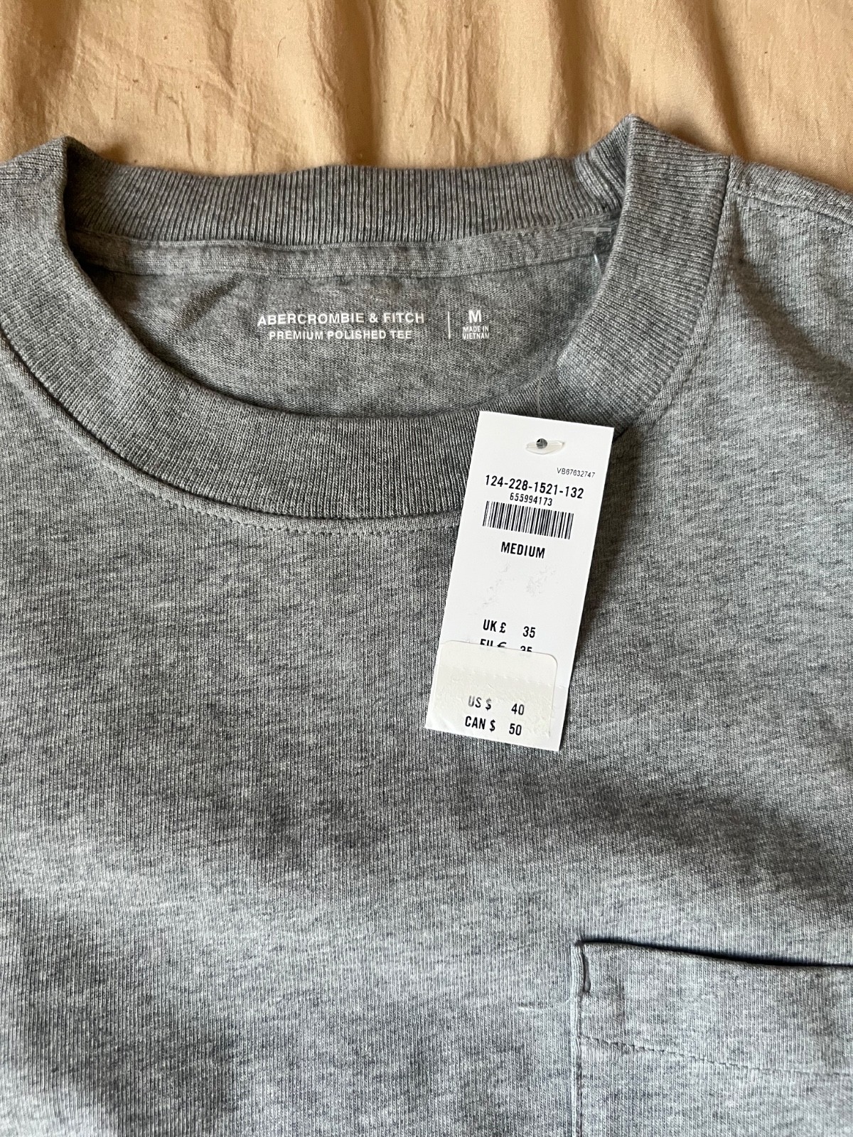 как выглядит Abercrombie Fitch Premium Polished Pocket Tee T Shirt Solid Gray Crew vtg H M фото