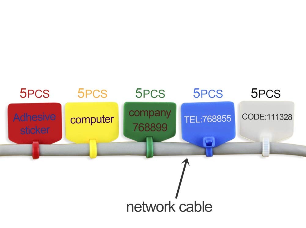 5 Colors Write on Ethernet Wire Zip Ties Nylon Power Marking Label Self-locki...