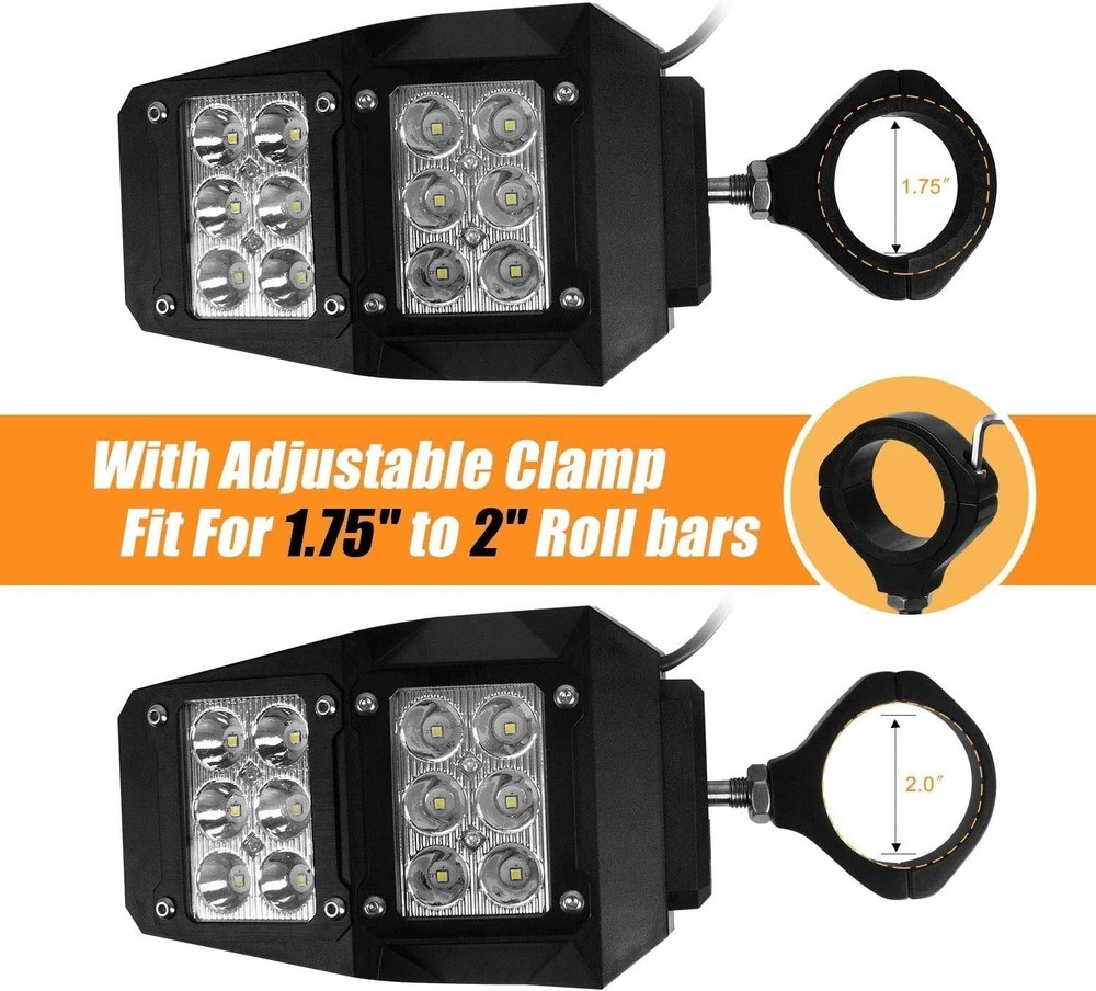 UTV Side Rear View Mirrors w/ LED Spot Lights for 1.75 2 Roll Bar Offroad