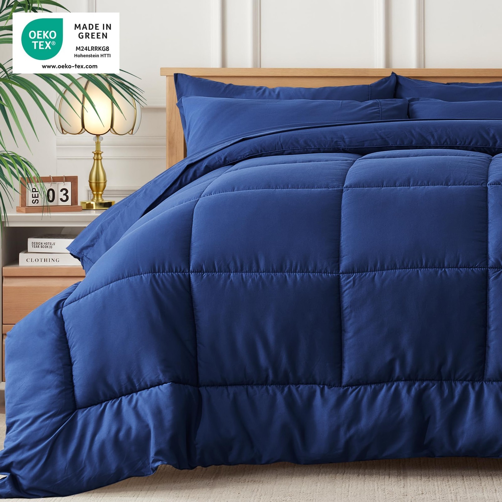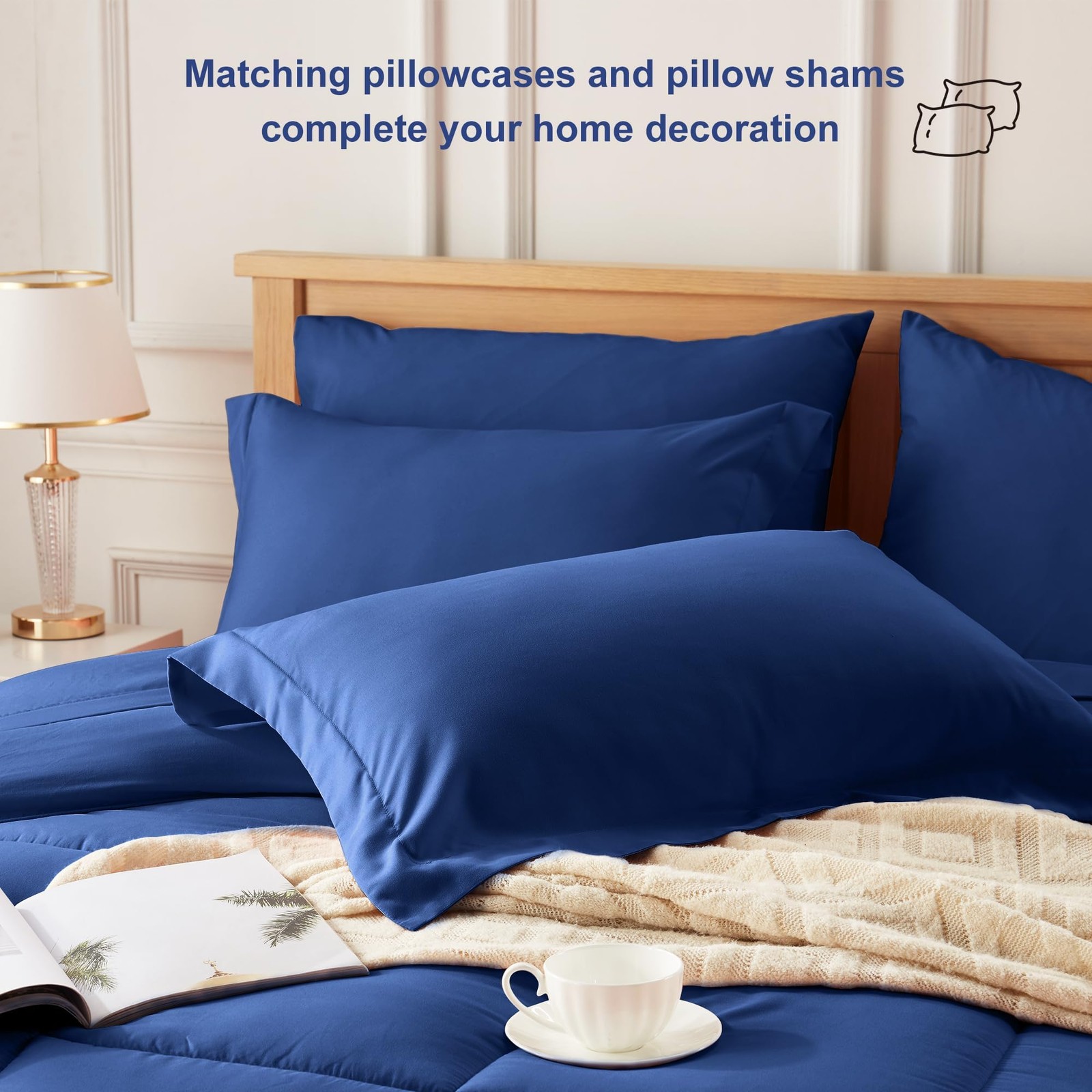 Newspin Twin XL Comforter Set Blue - Bed in a Bag Twin XL Size 5 Pieces, All ...