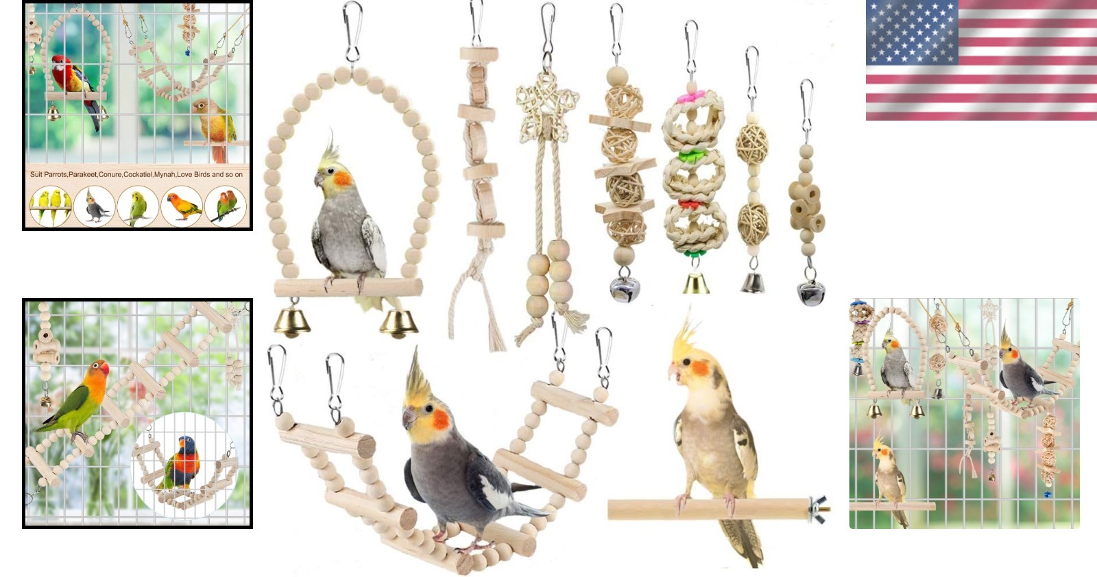 как выглядит 9-Piece Bird Play Gym with Swing, Perch Climbing Accessories - Safe Fun фото