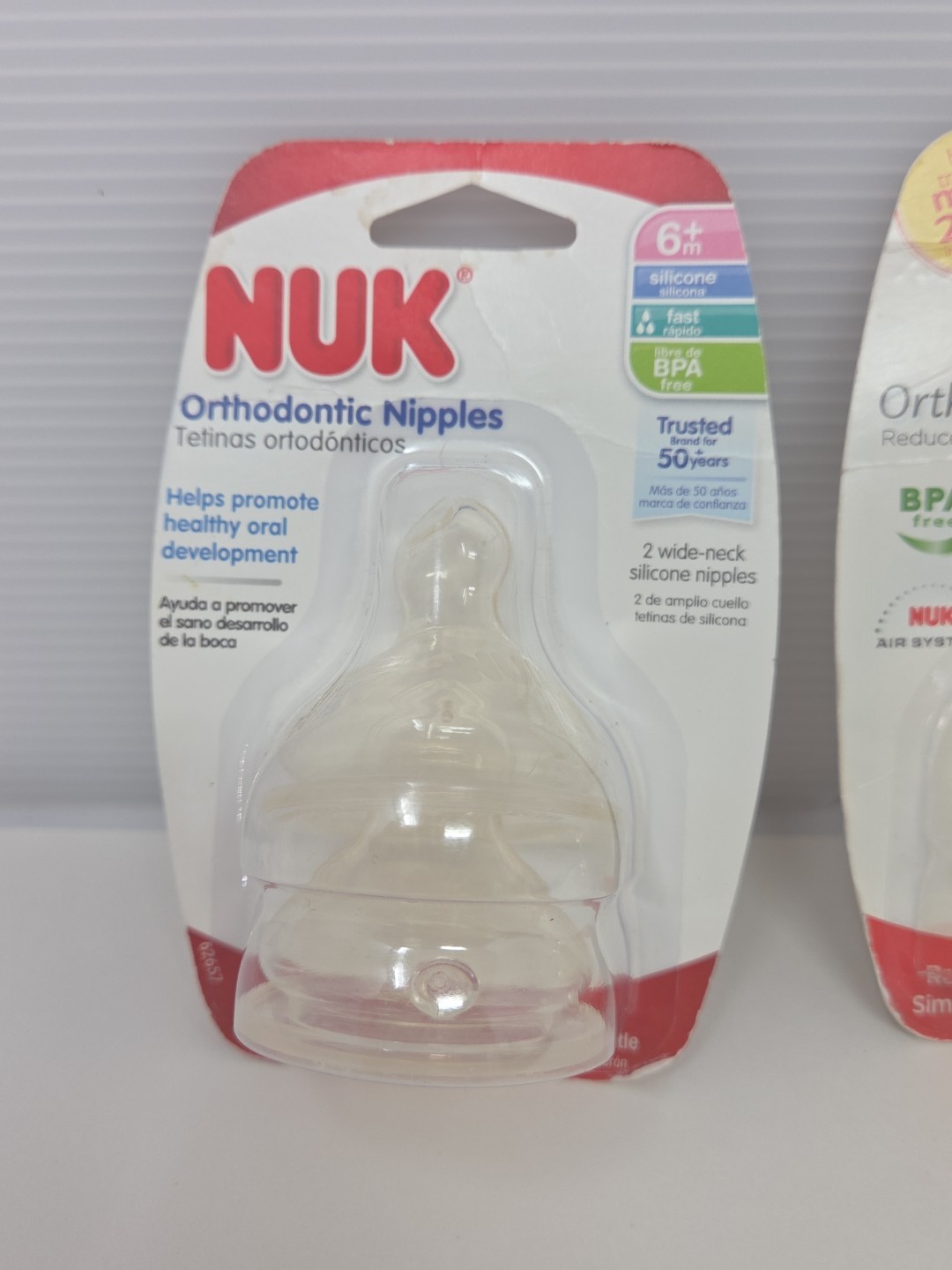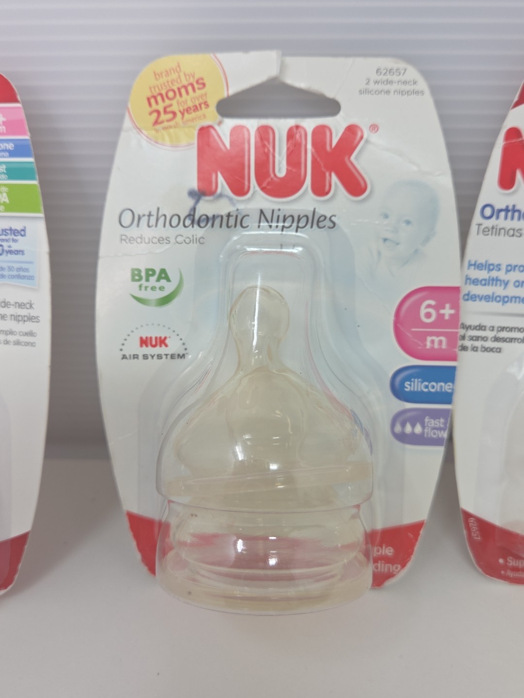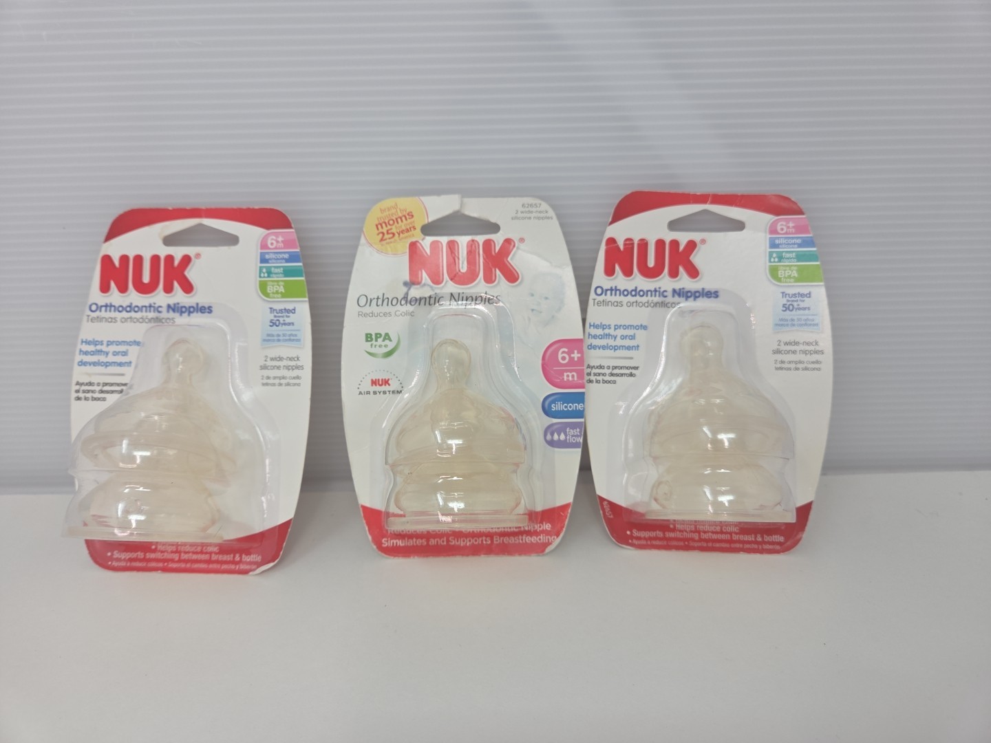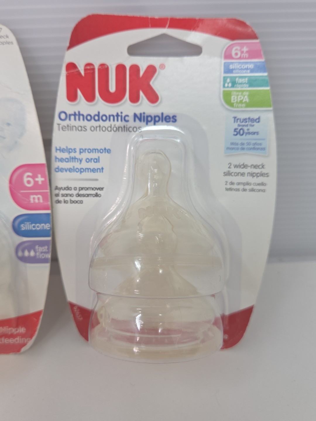 как выглядит 3 NUK Orthodontic Silicone Nipples 6 M Months Fast Flow 2 pk ea Germany New фото