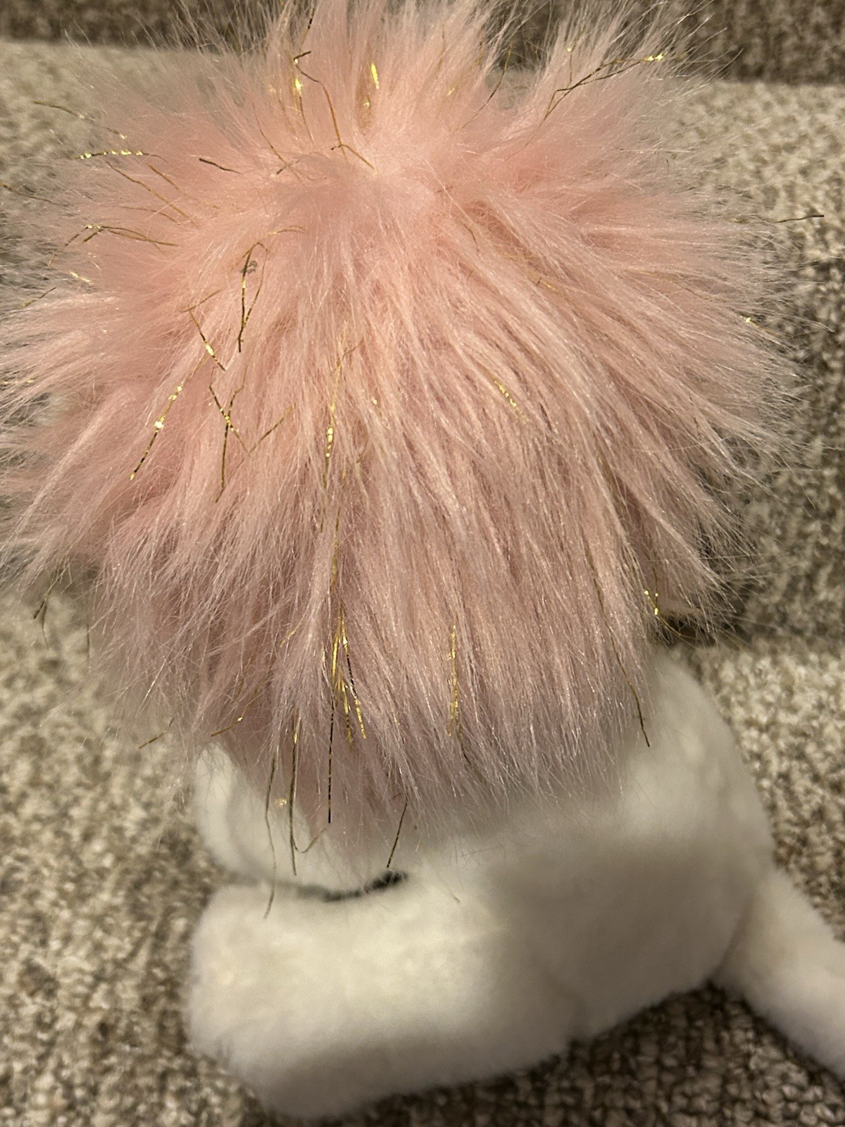 как выглядит FAO Schwarz Lion Plush White Stuffed Animal Toy 12" Pink Tinsel Mane Valentine s фото