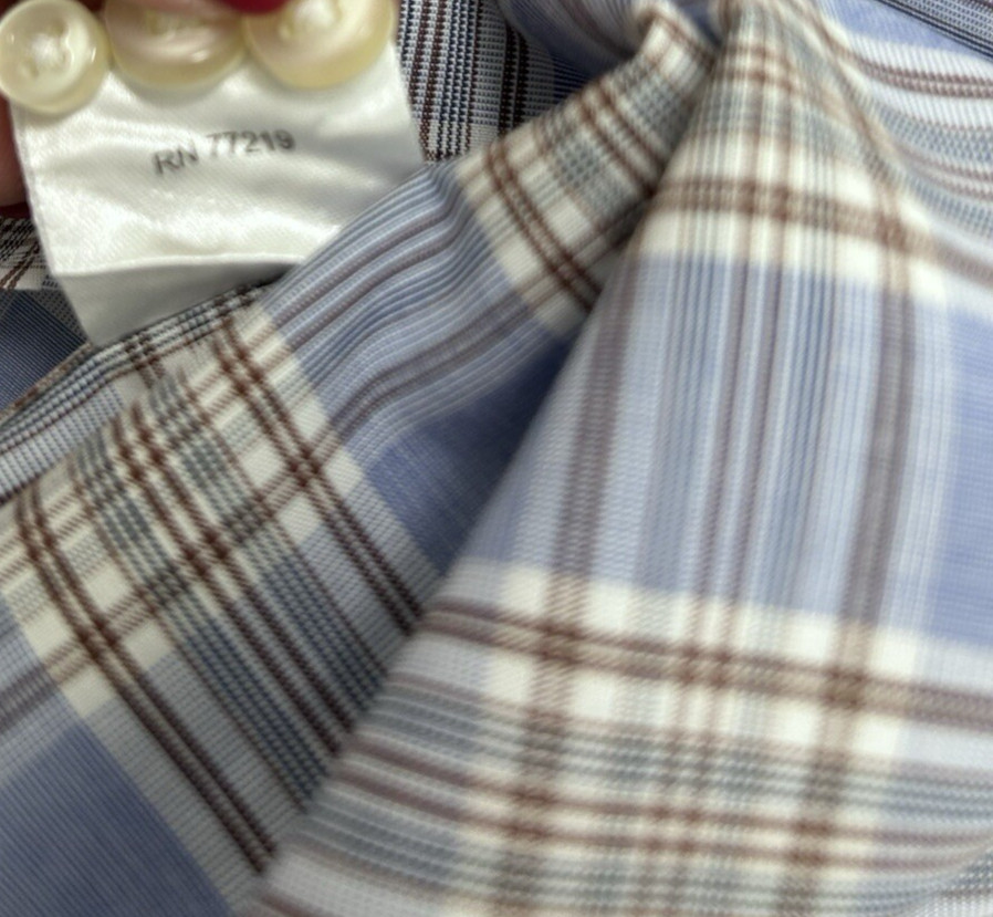 Egara Men's XXL Non-Iron Button Dress Shirt Plaid Light Blue White Brown