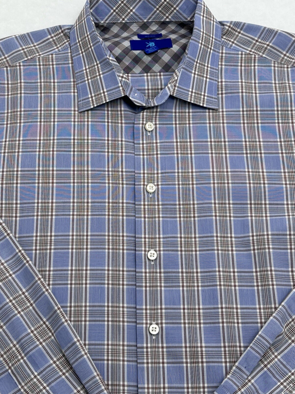 как выглядит Egara Mens XXL Non-Iron Button Dress Shirt Plaid Light Blue White Brown фото