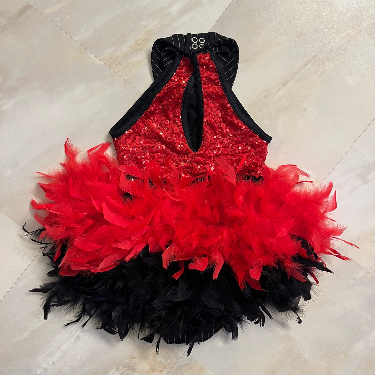 Dance Costume Weissman 13565 Red Tuxedo Feathers Tap Jazz Musical Pinstripe 6X
