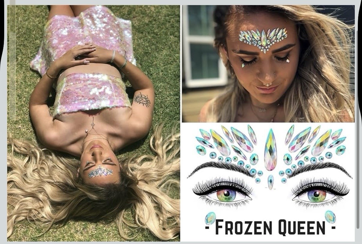 Face Gems Tattoo Adhesive Glitter Jewelry Sticker Festival Rave Party Set Of 6