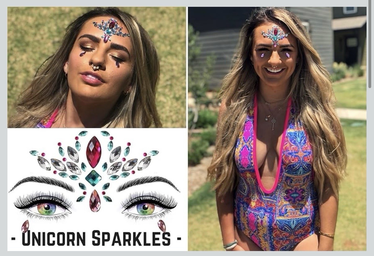 как выглядит Face Gems Tattoo Adhesive Glitter Jewelry Sticker Festival Rave Party Set Of 6 фото