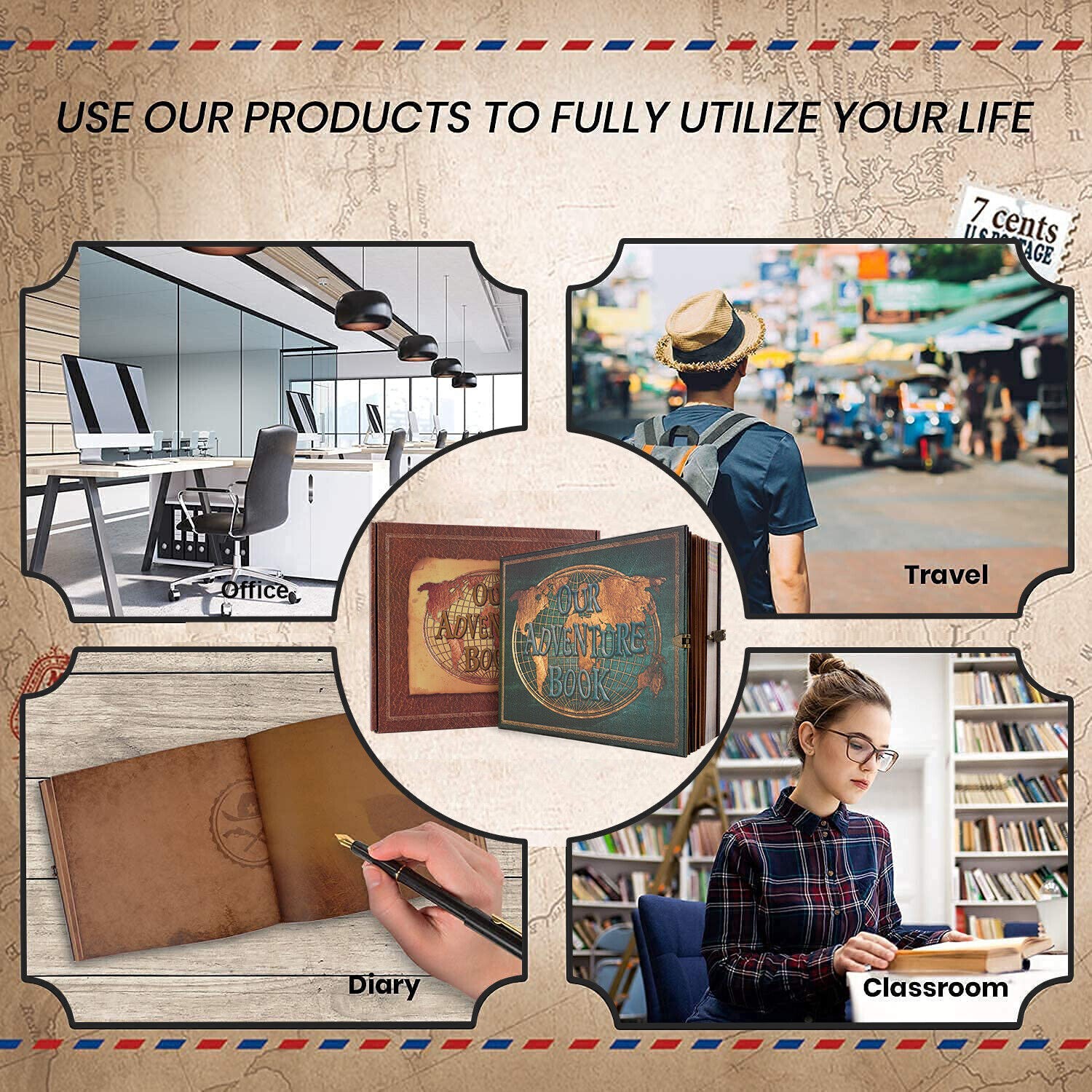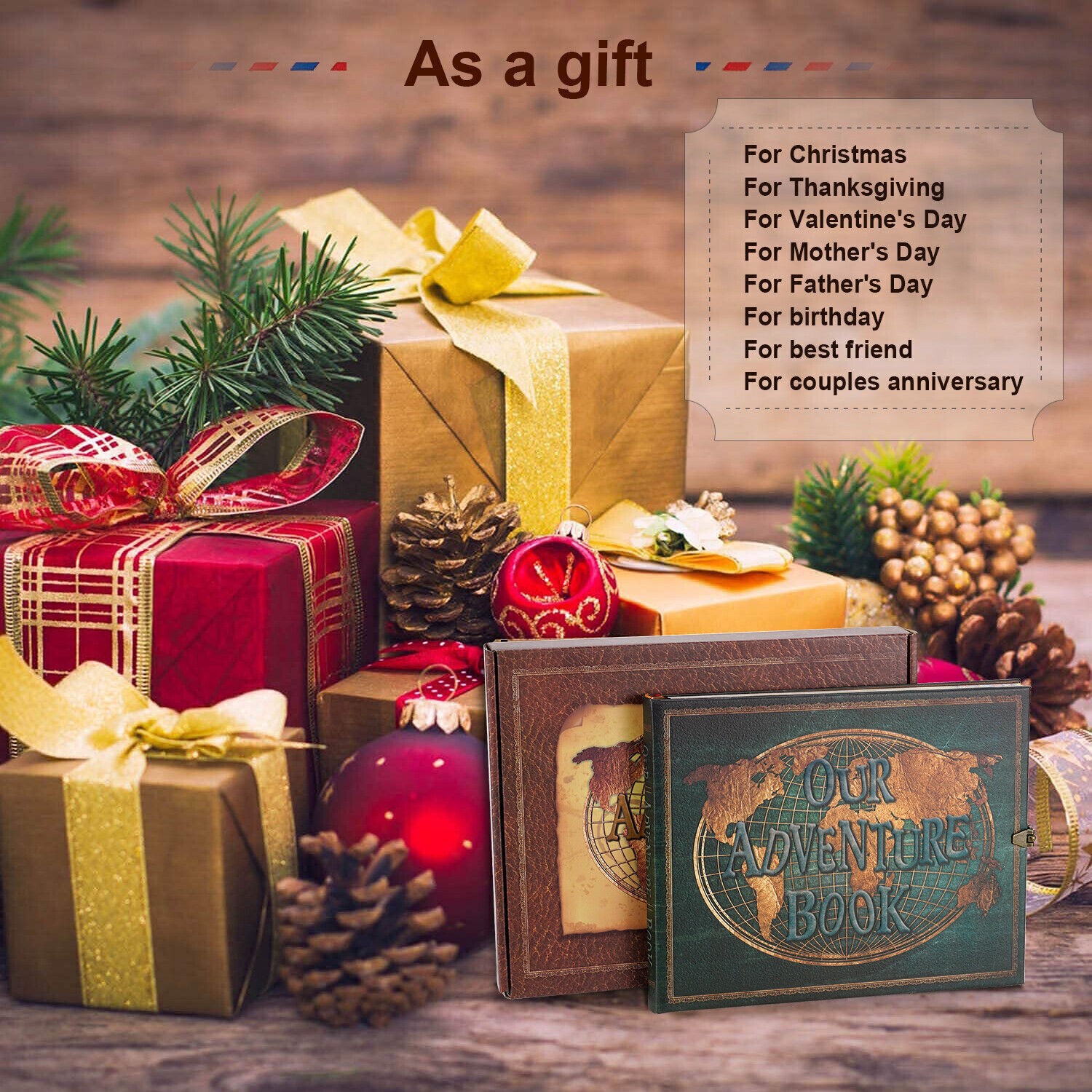 180 Pages Our Adventure Book Scrapbook Photo Album Retro Embossed Christmas Gift