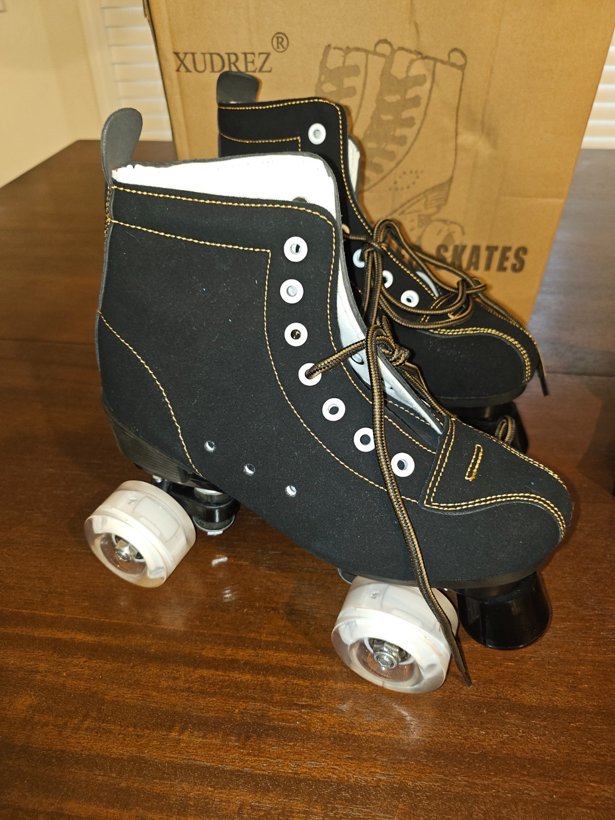 как выглядит XUDREZ Cowhide Roller Skates for Women and Men High-Top Shoes Double-Row Size 38 фото