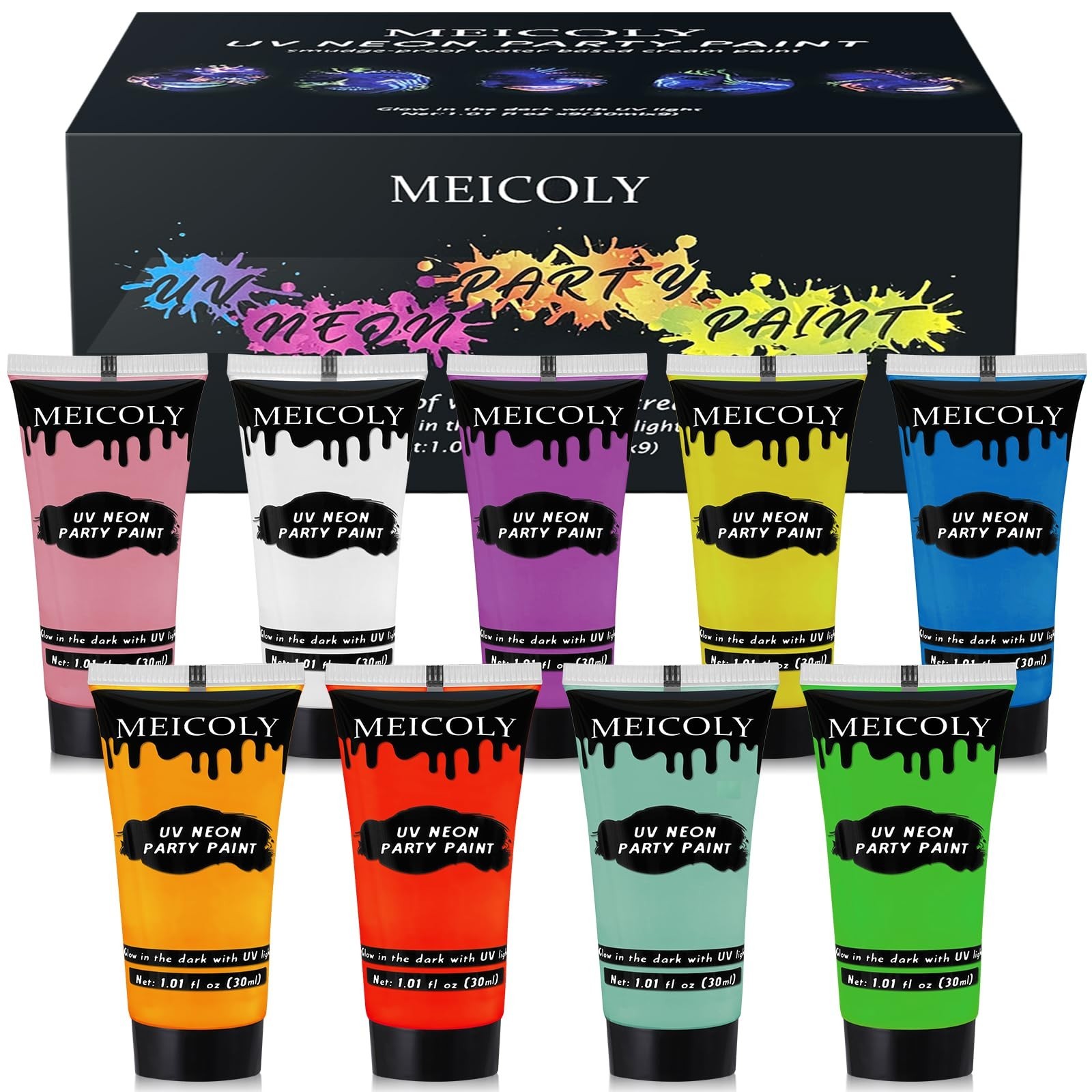 Glow in the Dark Blacklight Face Body Paint Set - Neon Fluorescent Makeup Kit