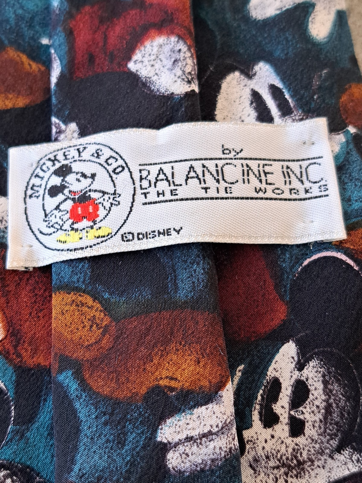 Vtg Disney Mickey Mouse Men's Neck Tie 3.5 x 57 Black/White/Teal/Brown SILK