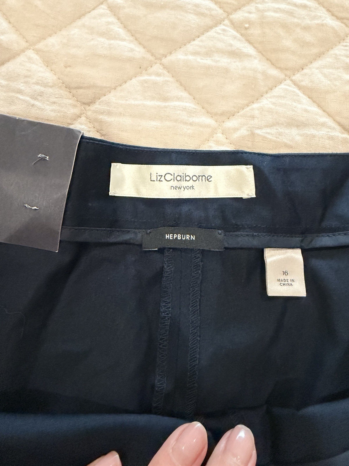 как выглядит NWT Liz Claiborne NY Hepburn Cropped Stretch Woven Pants-Soft Navy Size 16 фото