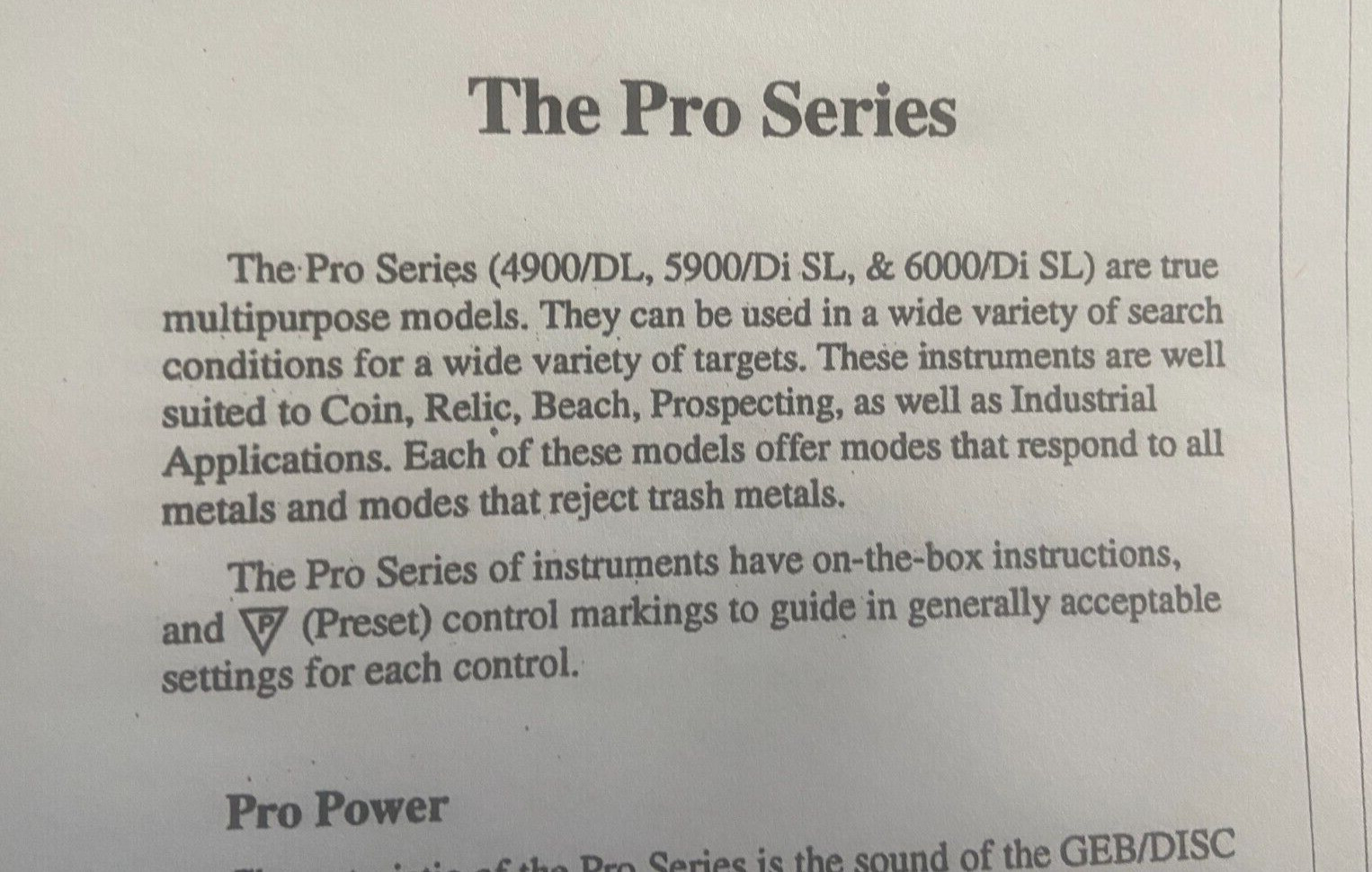 UNDERSTANDING WHITE'S 4900 /DL SERIES METAL DETECTOR MANUAL INSTRUCTIONS