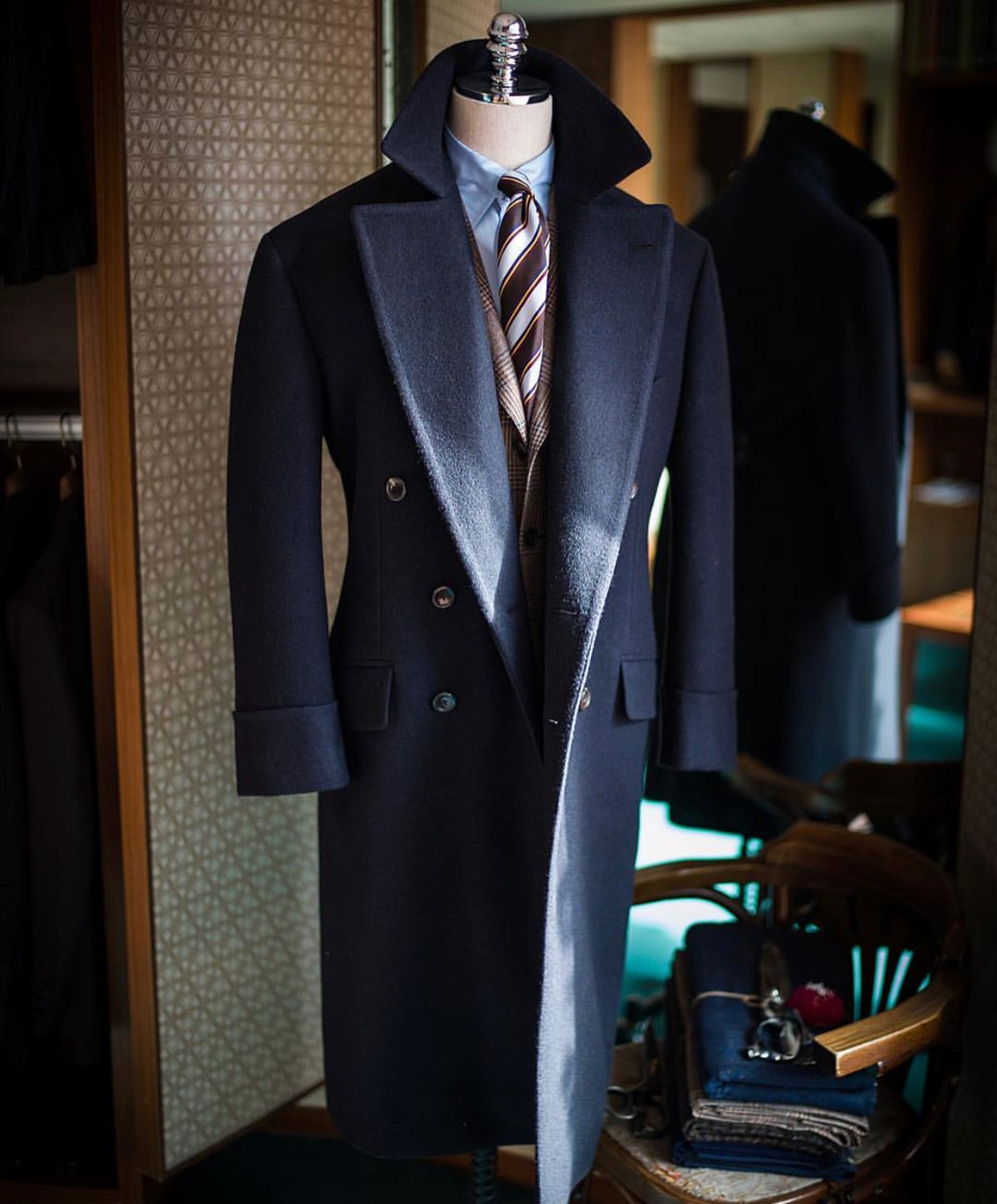 как выглядит Cashmere Mens Overcoat Navy Blue Stand Up Collar Outdoor Winter Warm Long Coat фото