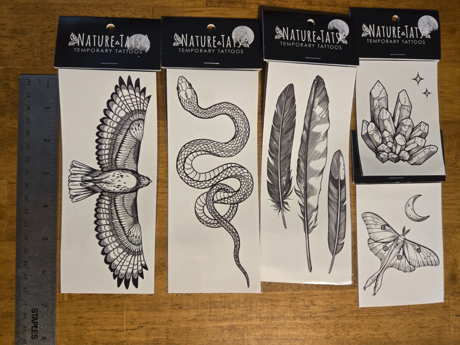 Five Black And White Nature Themed Temporary Tattoos 3-6