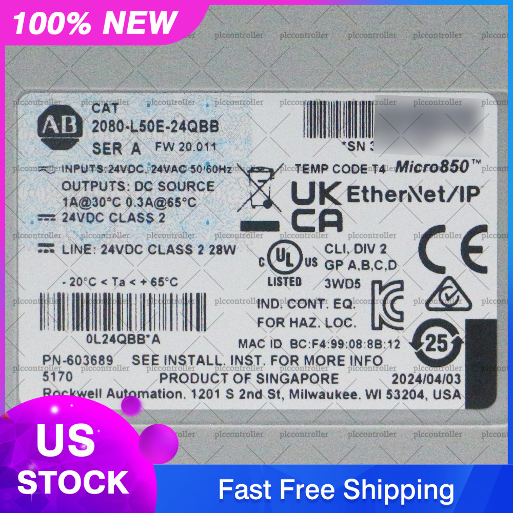 100 New Allen-Bradley 2080-L50E-24QBB Micro850 24 I/O EtherNet/IP Controller