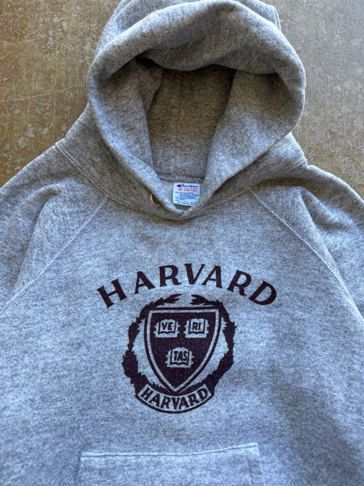 VTG 80s Champion Harvard University Hoodie Sweater Kids 10-12 USA Water Print