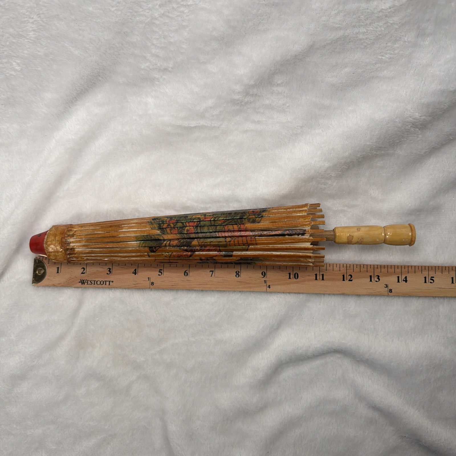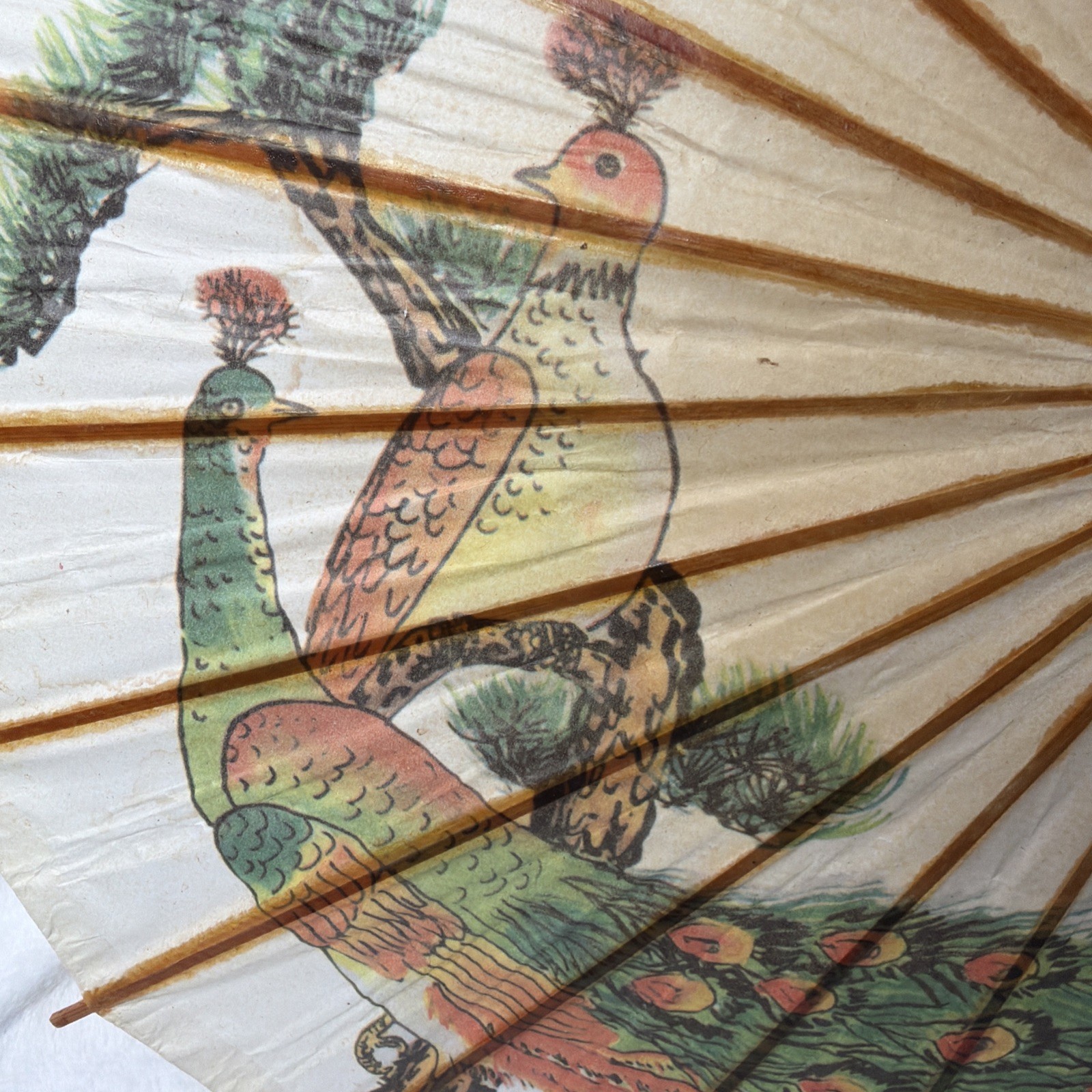 как выглядит Vtg Japanese Wagasa Paper Parasol Peacock Bamboo Umbrella Asian Decor фото