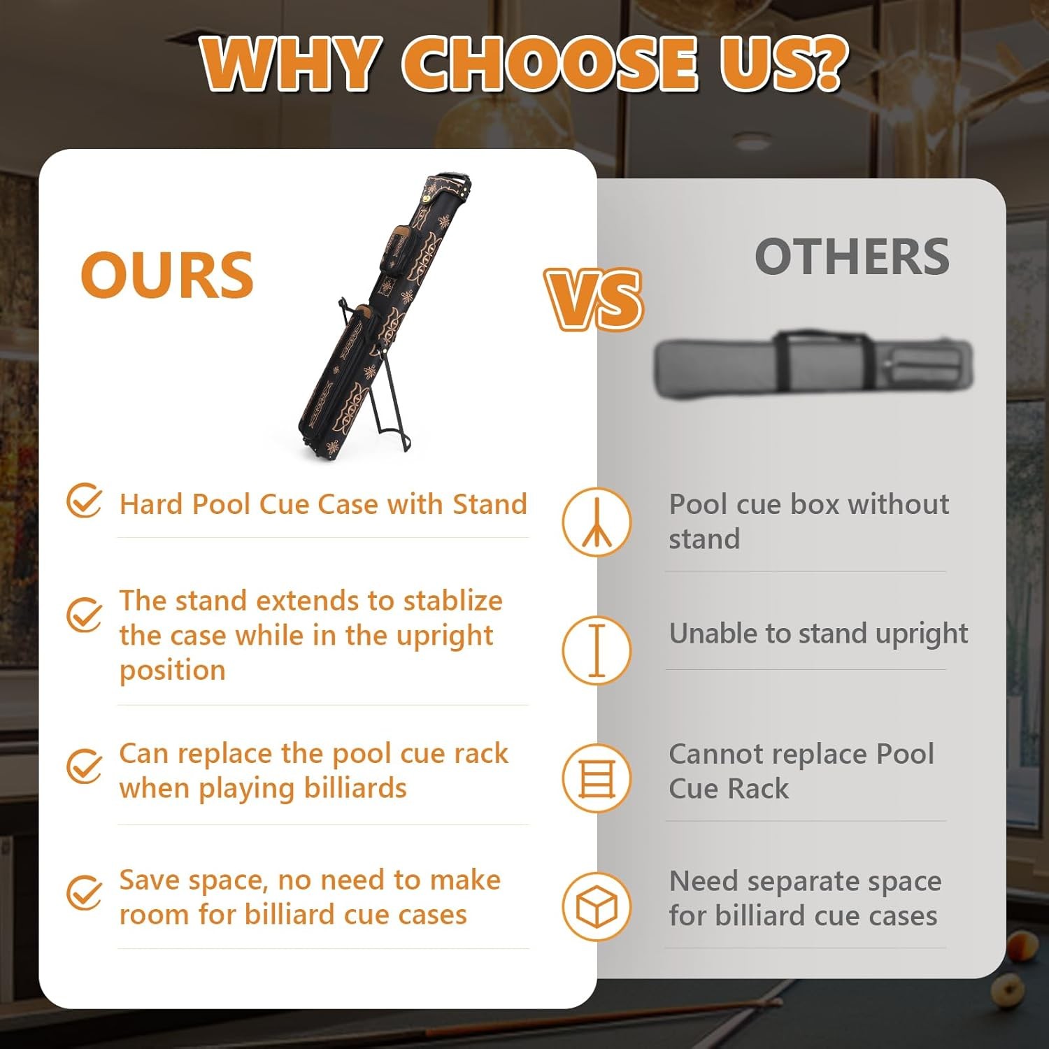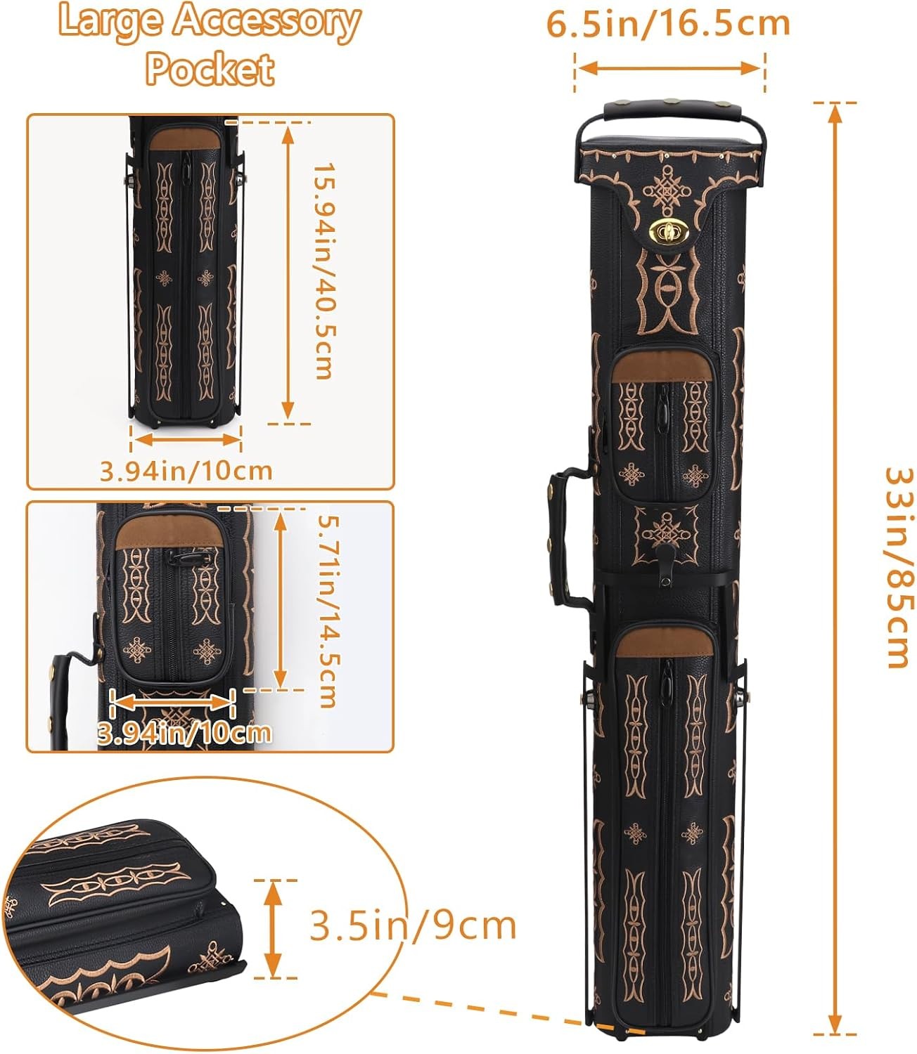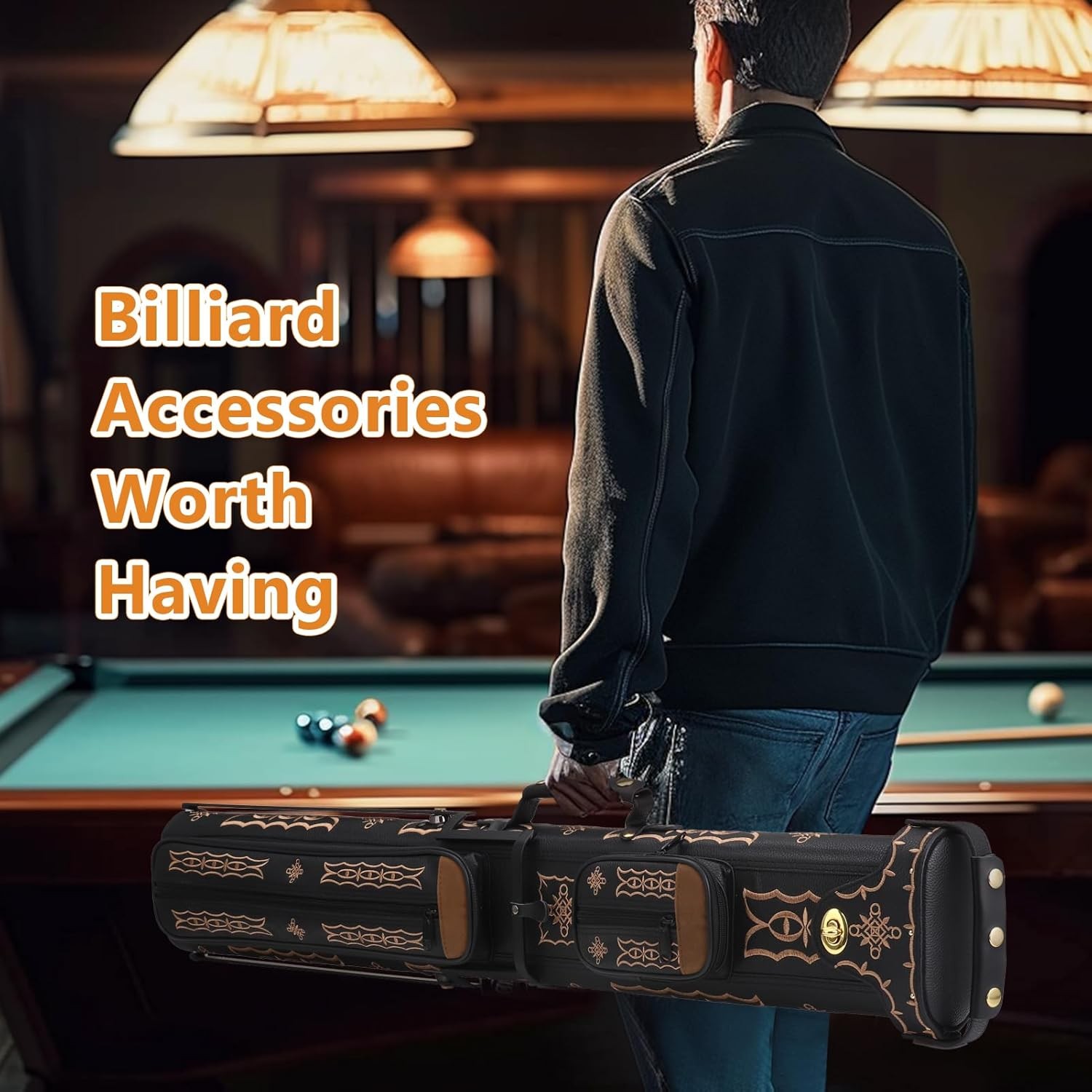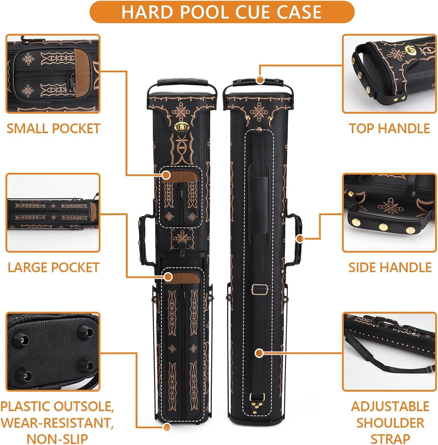 Pool Cue Case 2x4 Embroidery Hard Case W/Stand Holds 2 Butts 4 Shafts PU Leather