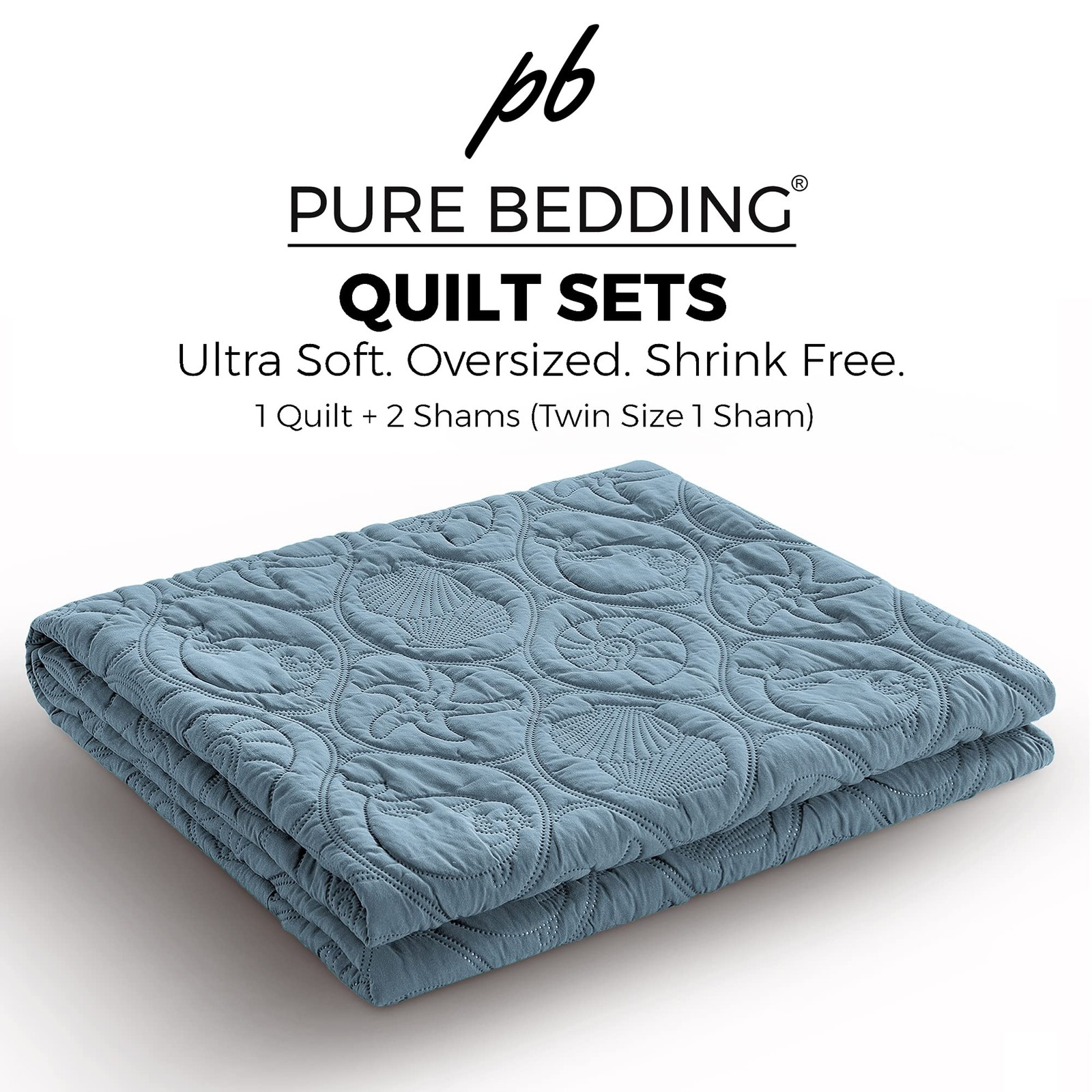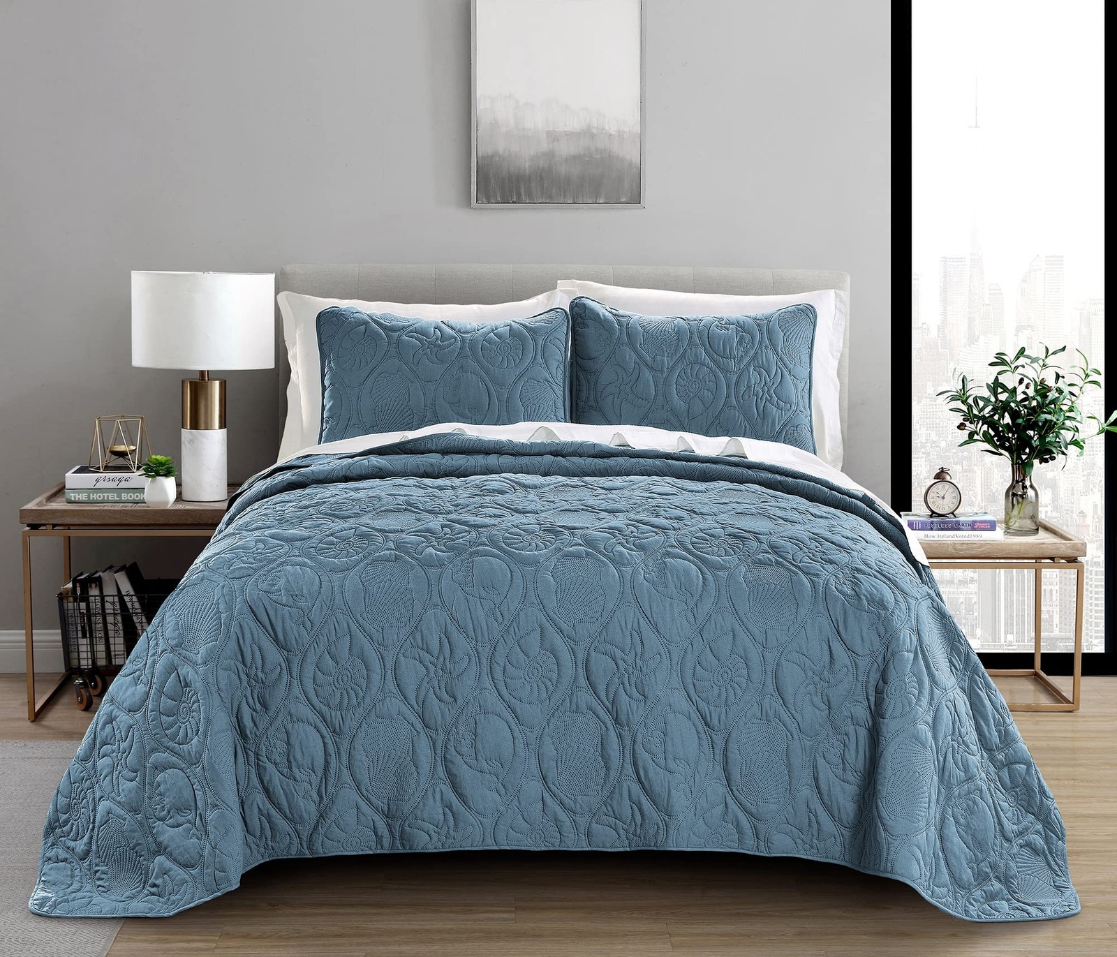 Quilt Set Full/Queen Size Ash Blue - Oversized Bedspread - Soft Microfiber Co...