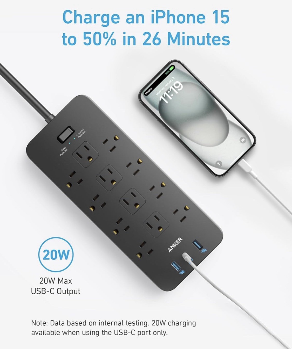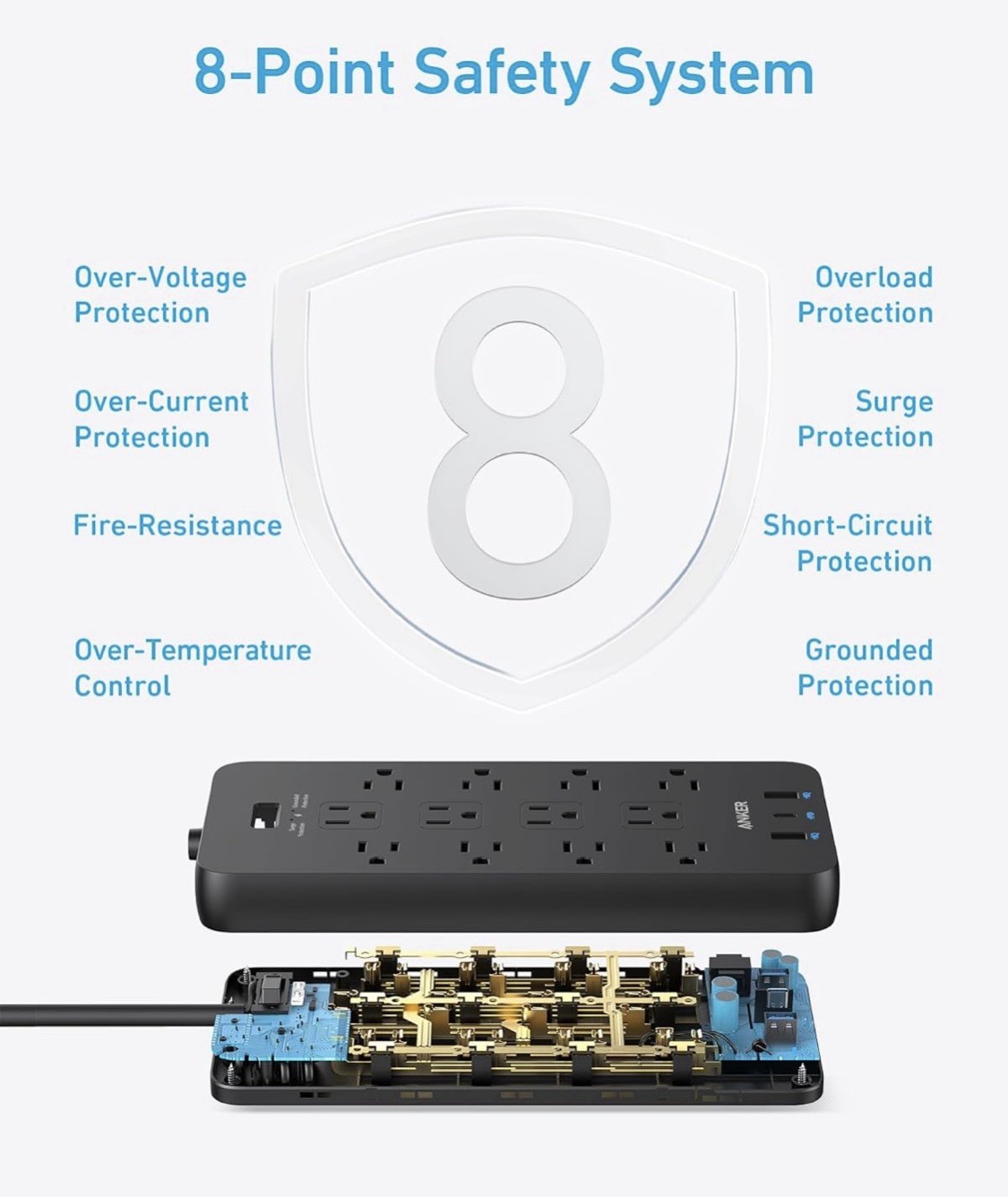 как выглядит ANKER Power Strip Surge Protector 2100J , 12 Outlets with 2 USB A and 1 USB CP фото