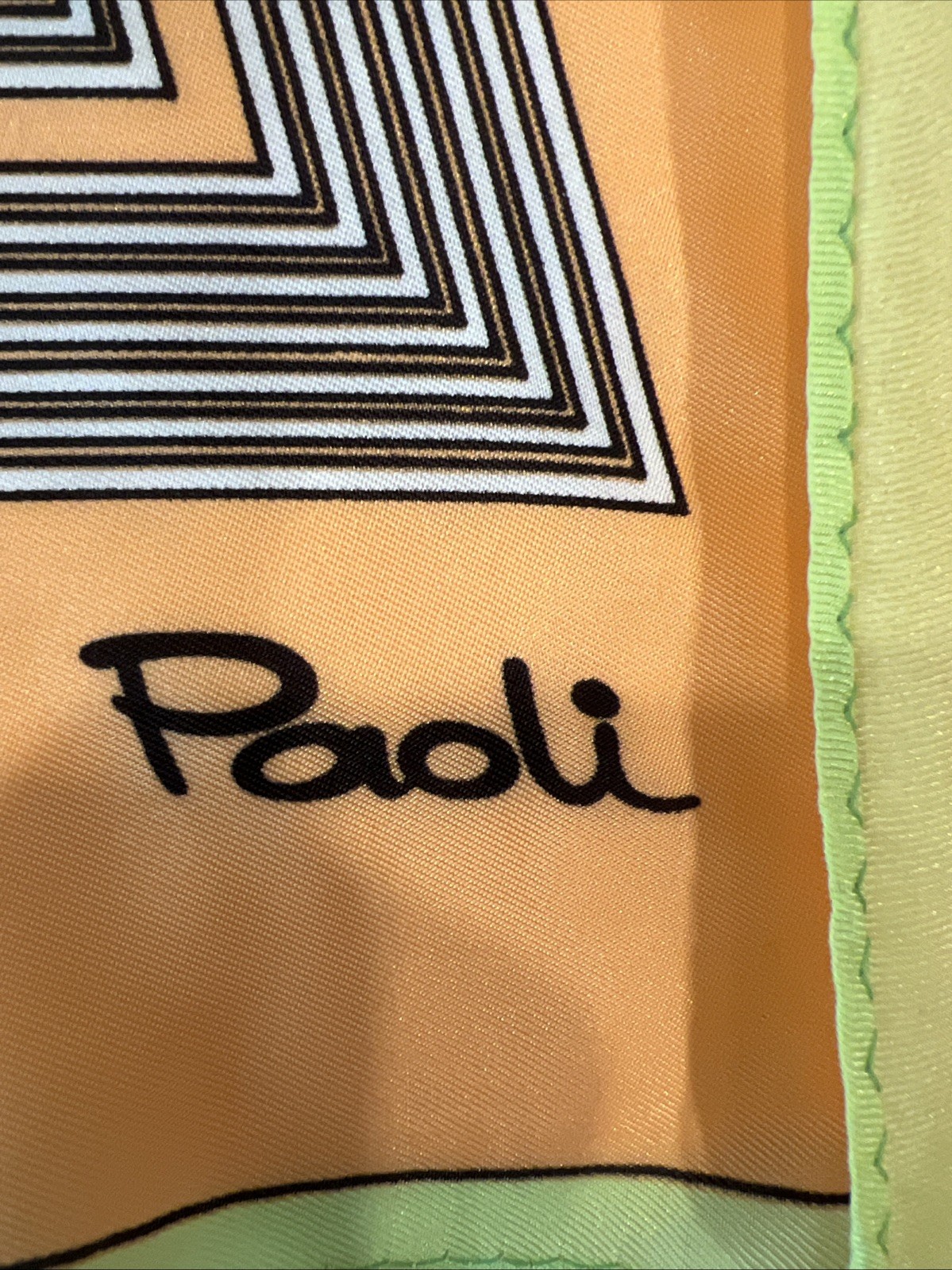как выглядит Vintage 60s Paoli Ladies Geometric Mod Scarf Orange Green Hand Rolled Japan фото