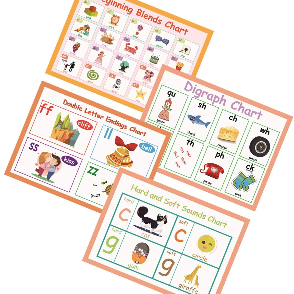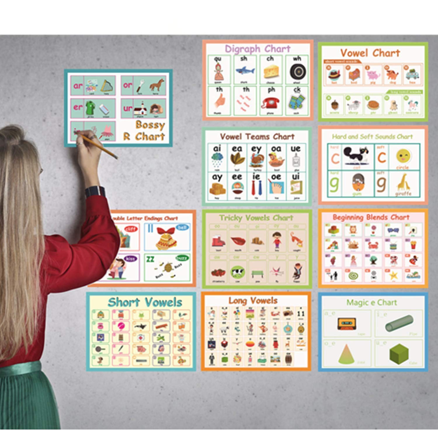 LUGMAZU 11Pcs/Set A4, 11Pcs English Phonics Language Arts Skills Charts