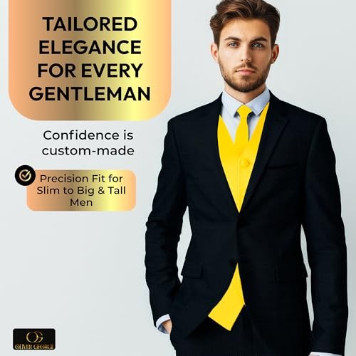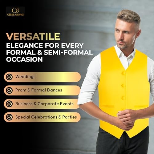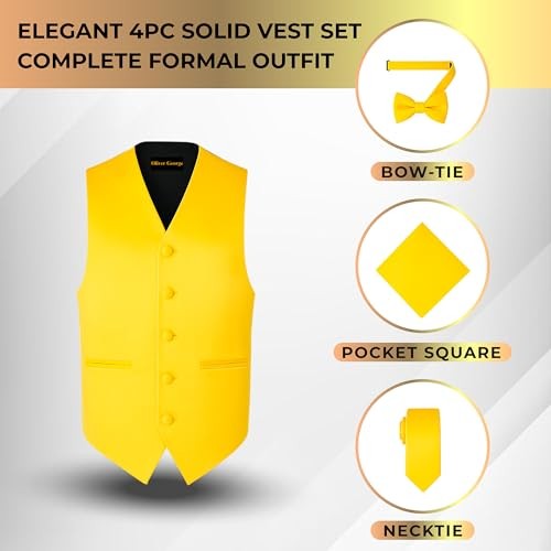 4pc Men's Solid Formal Suit Waistcoat Tuxedo Dress Vest X-Small Yellow Gold