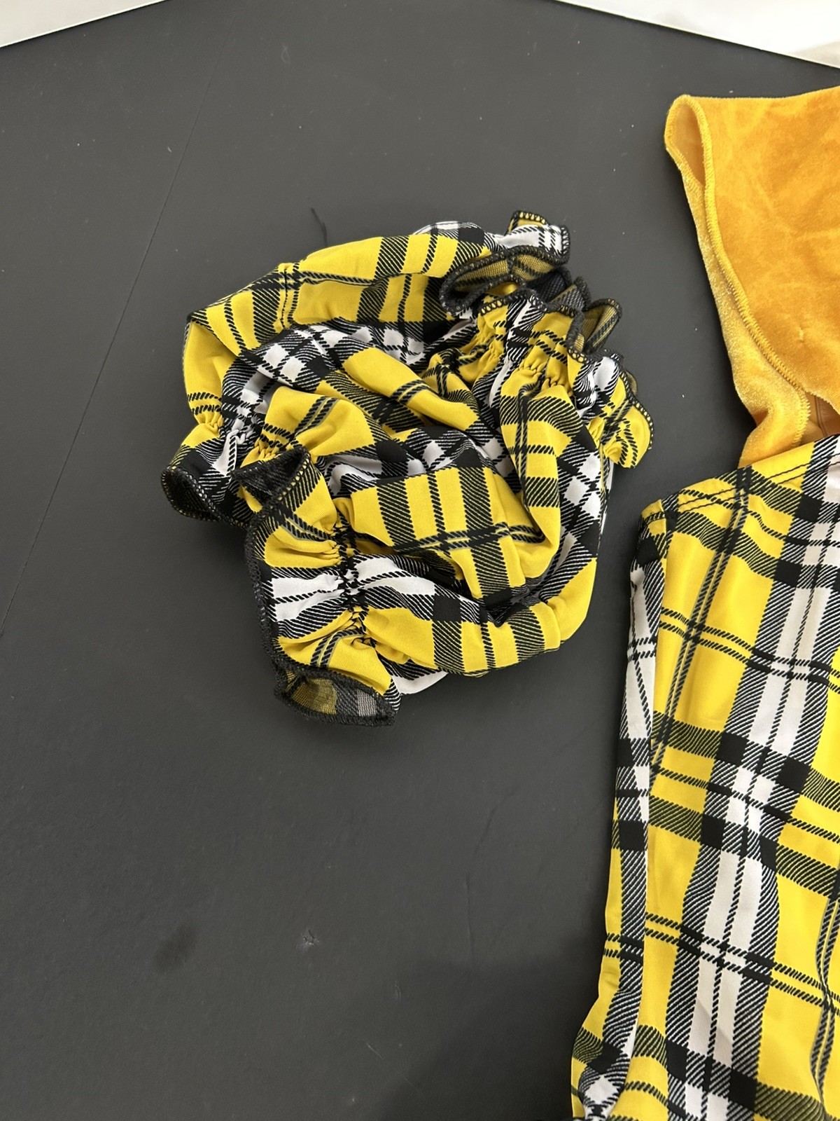 как выглядит Algy Scottish Yellow/Black Plaid Dance Costume w/ Sleeves Stockings C/Lg фото