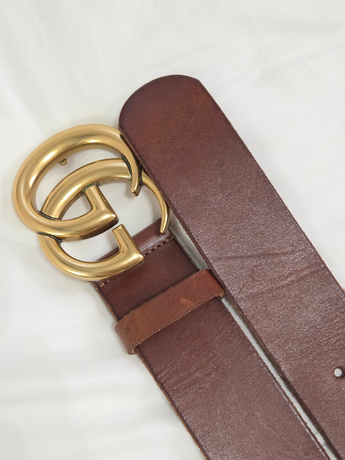как выглядит Authentic Unisex GUCCI Brown Leather Marmont Belt Gold GG sz 36/38 фото