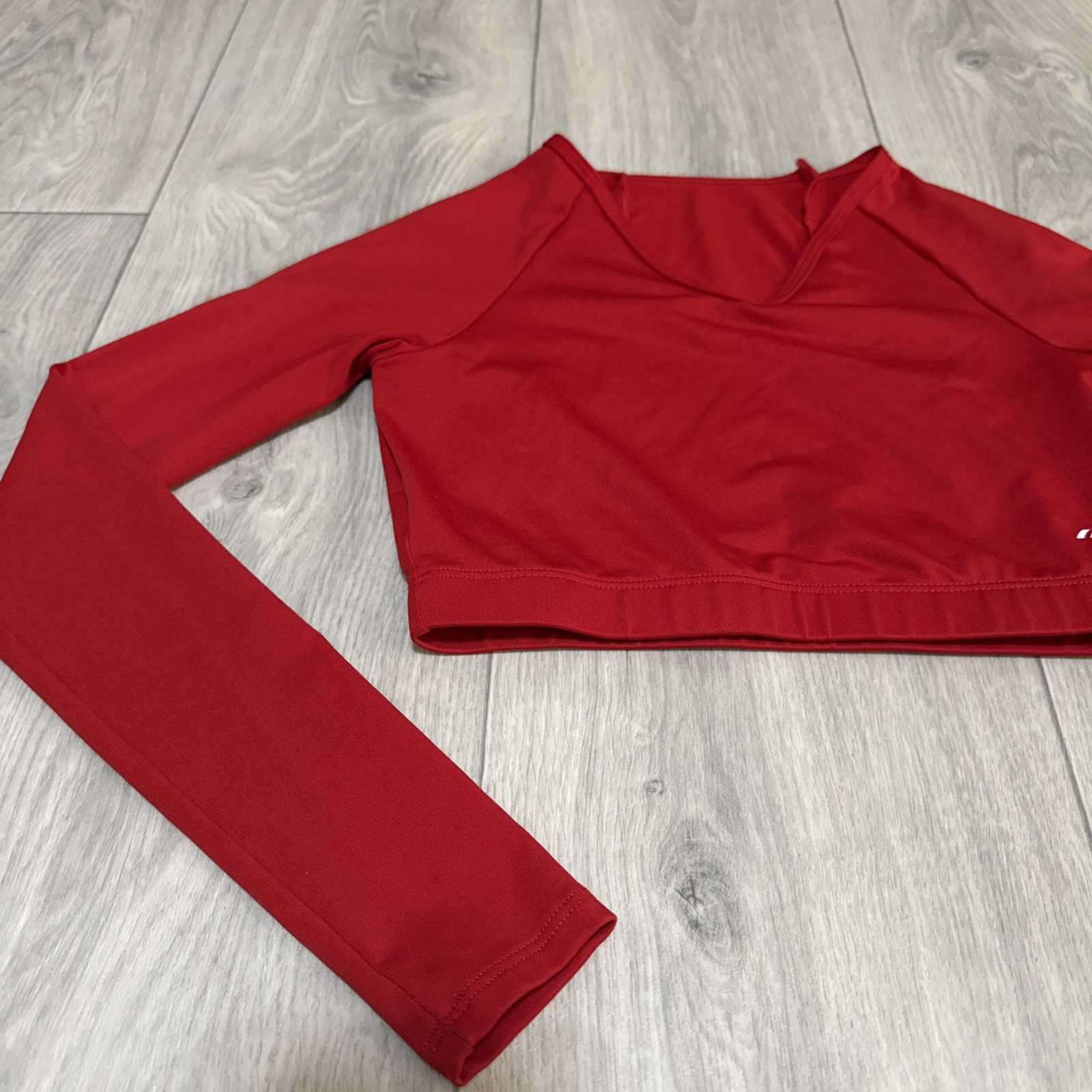 как выглядит Varsity Spirit Red Long Sleeve V-Neck Cheer Crop Top Midriff Shirt Womens Small фото