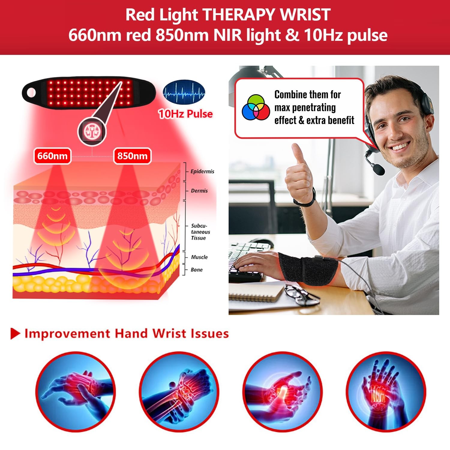 Red Light Therapy Near Infrared Led Heat Warmer Wrap for Hand Wrist Pain Relief