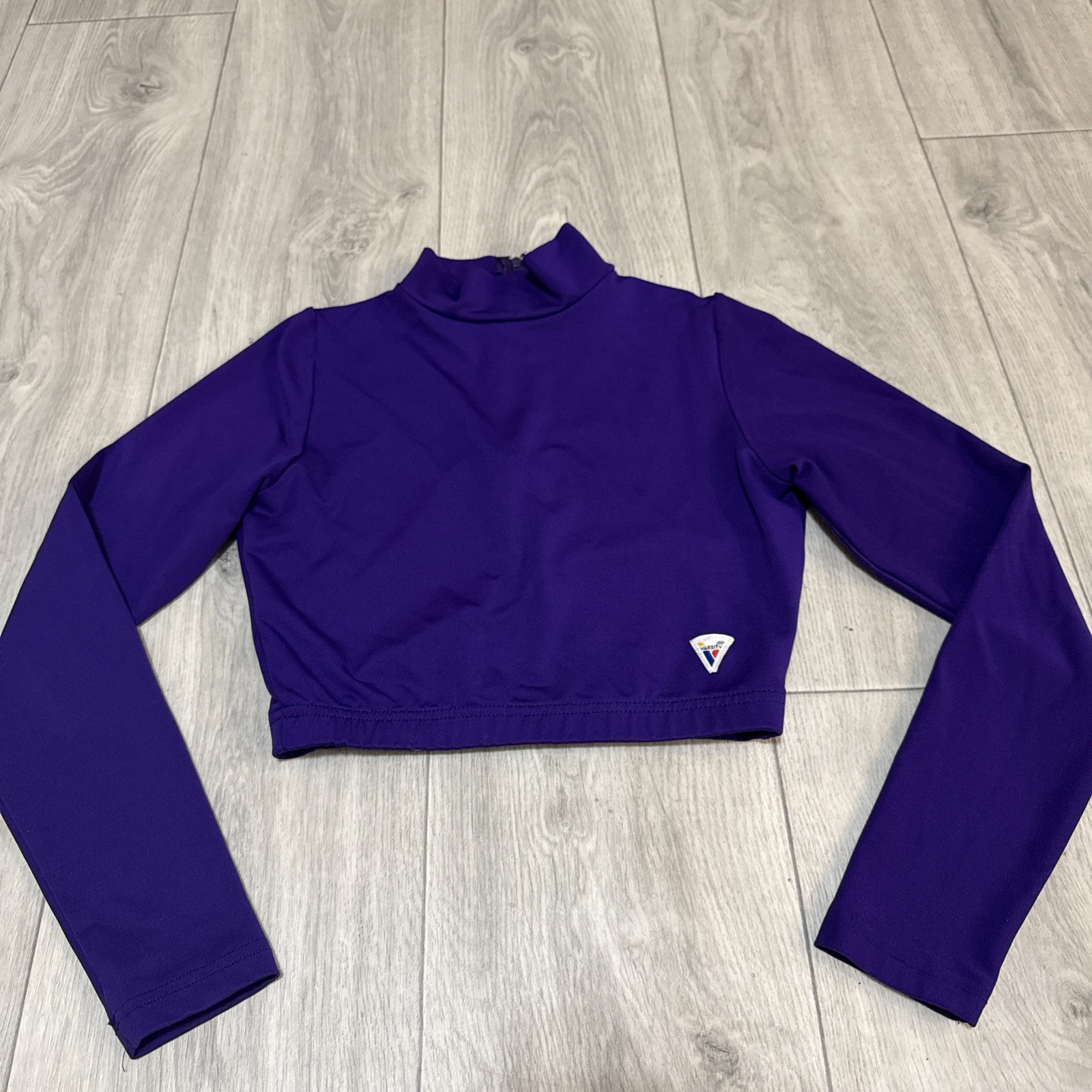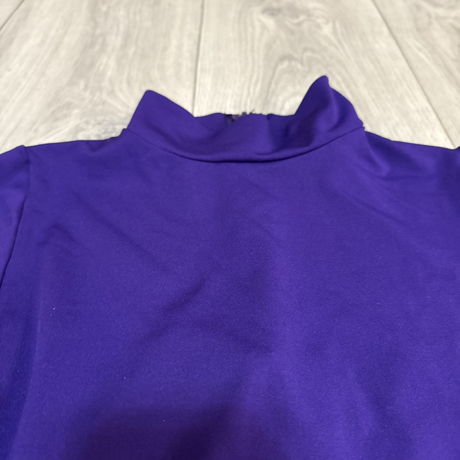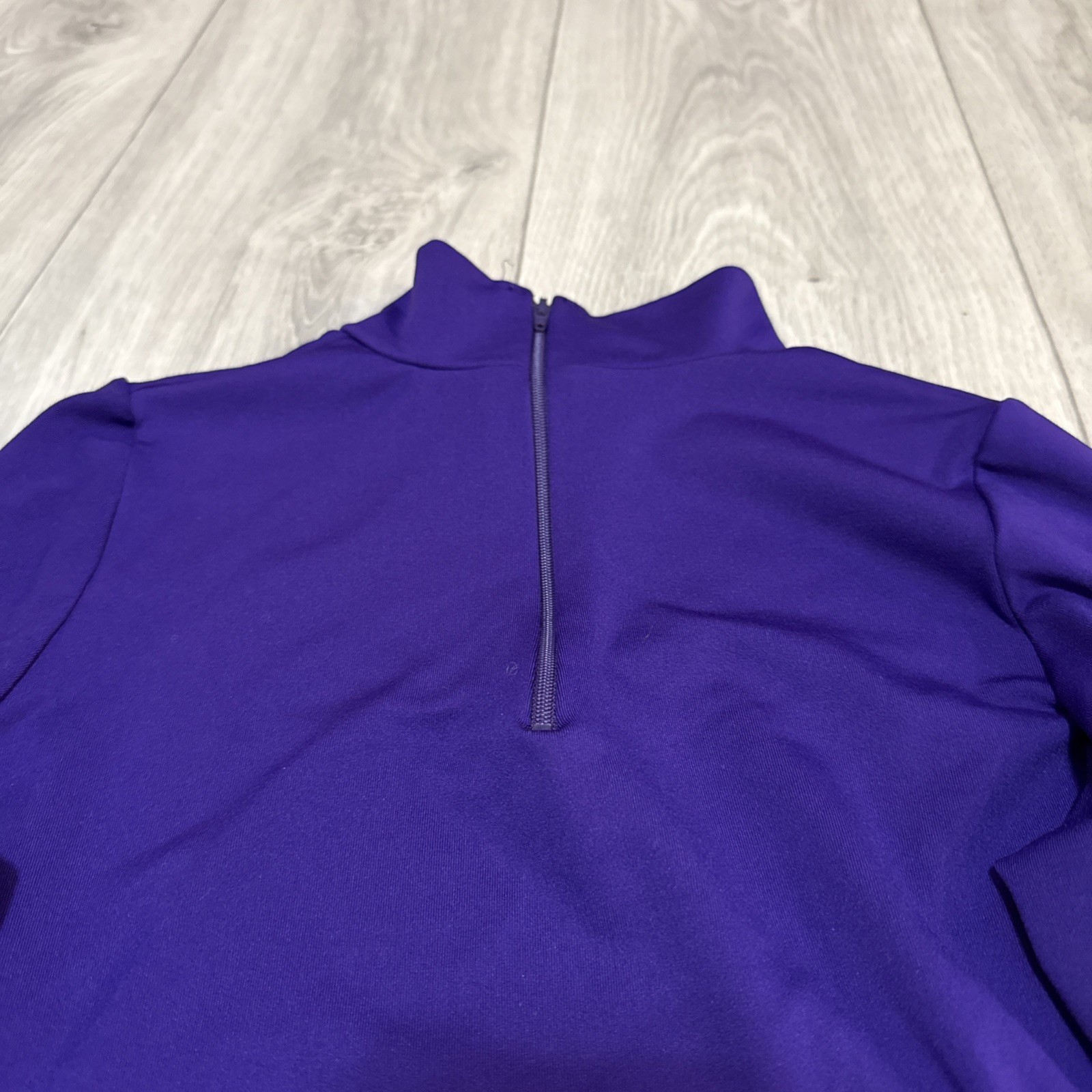 как выглядит Varsity Spirit Womens Purple Cheer Top Medium Mock Neck 1/2 Zip Long Sleeve фото