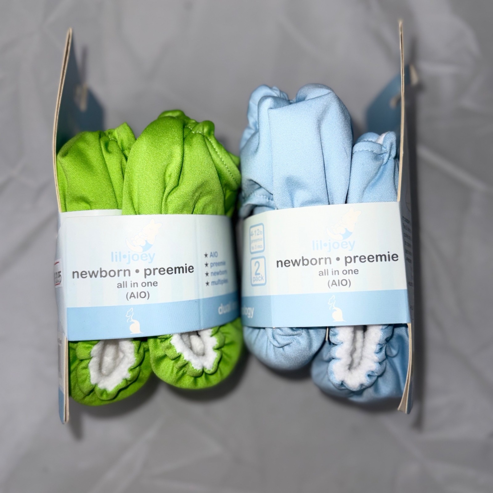 Lil Joey Cloth Diaper 2 Pack Newborn/Preemie Green Blue Reusable AIO