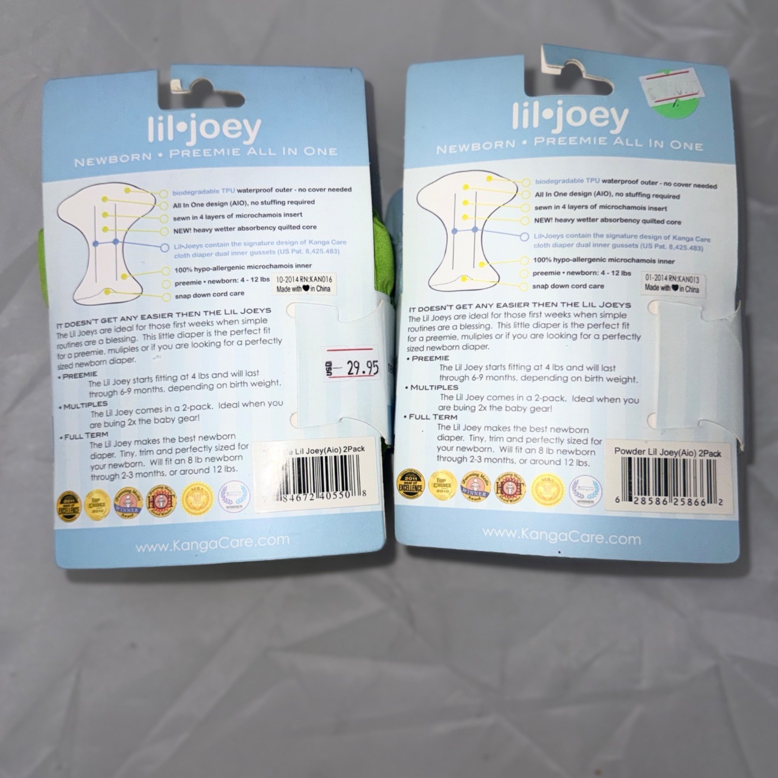 как выглядит Lil Joey Cloth Diaper 2 Pack Newborn/Preemie Green Blue Reusable AIO фото