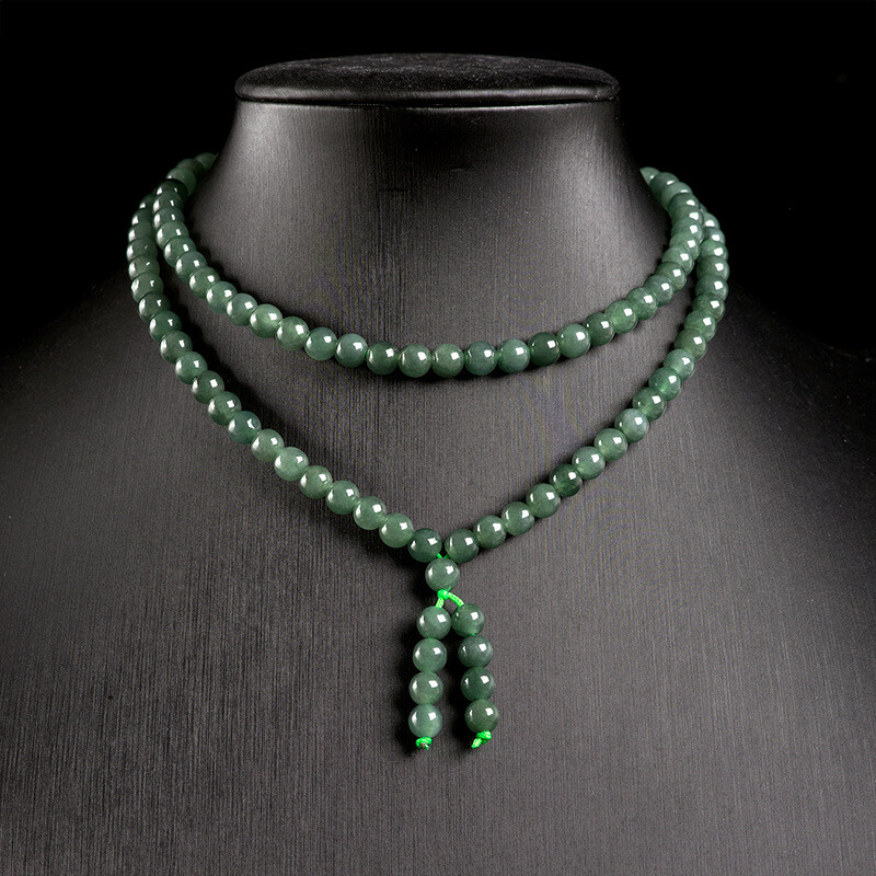 как выглядит Natural Grade A Jade Jadeite Necklace Women 6mm Oil Green Beaded Chain 24inch L фото