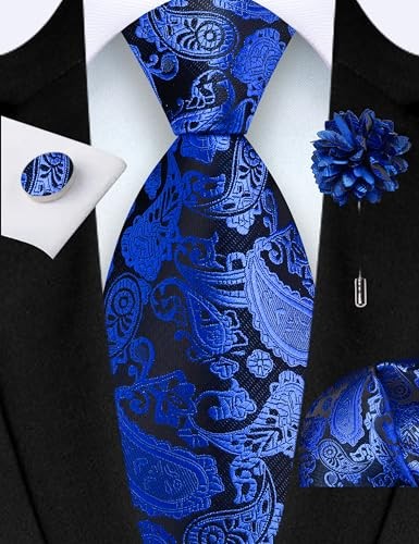3.15 8cm Mens Paisley Tie and Lapel Pin Necktie Hankerchief Royal Blue -2