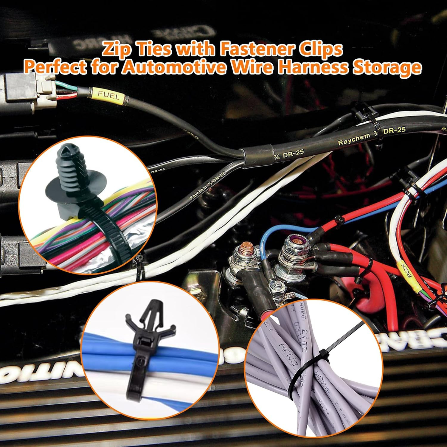 • 180Pcs Wire Loom Clips for Car Push Mount Zip Ties Assorted Sizes Automotive Fue