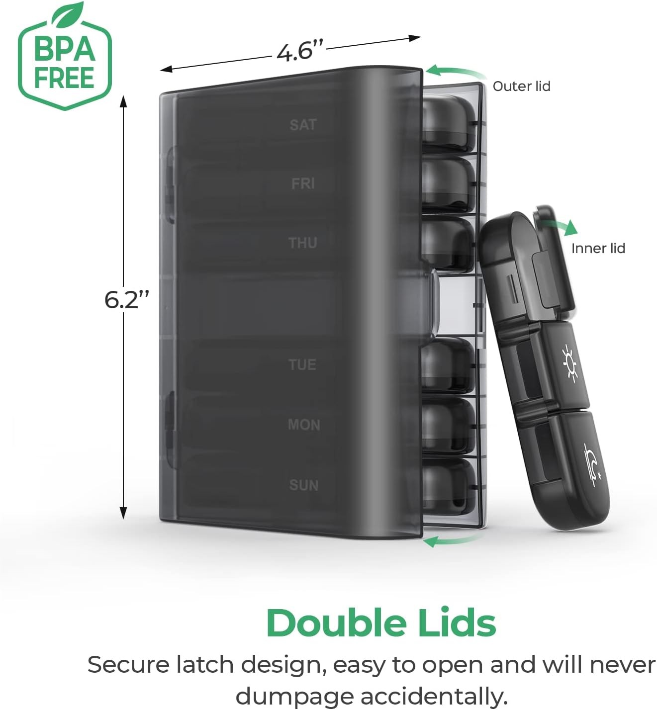 Weekly Pill Box Organizer Pill Case Medicine Planner 3 Times A Day Easy to Clean