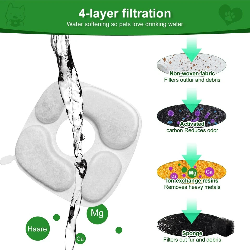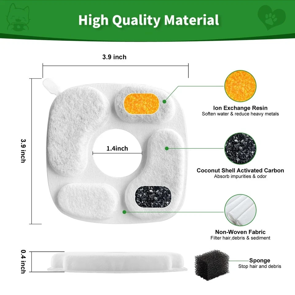 Cat Water Fountain Filter 24 Pack with Pre-Filter Sponges for 95oz Fountain
