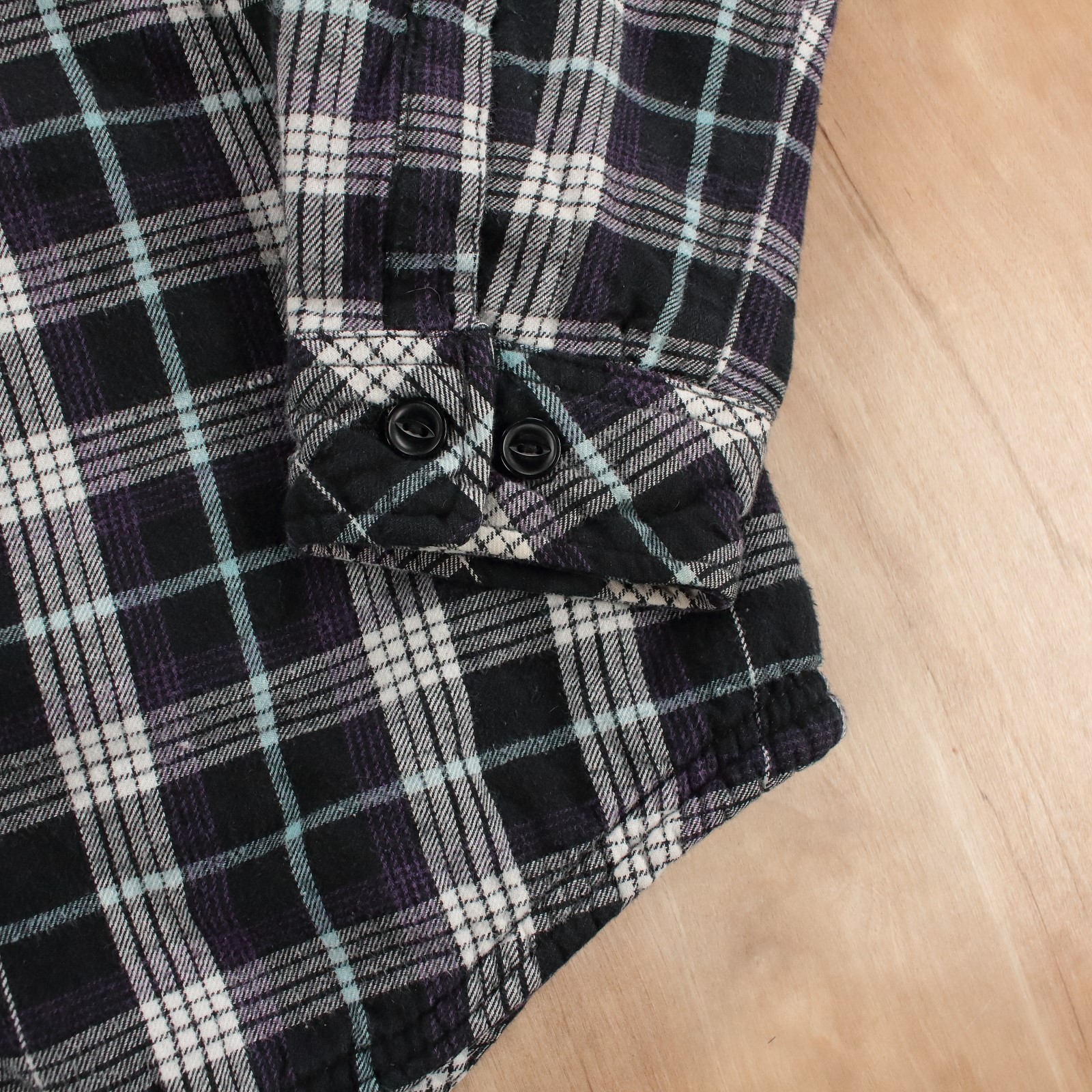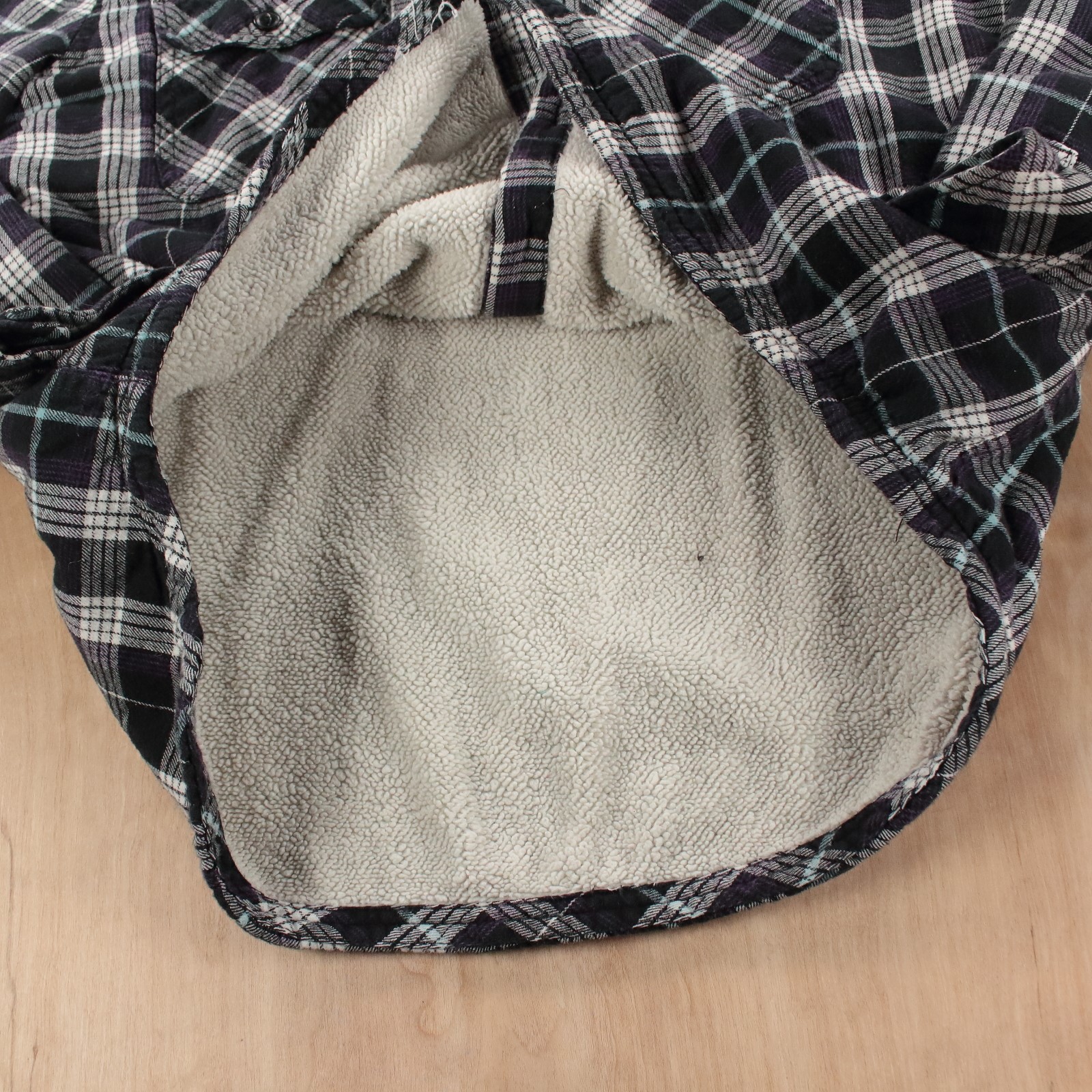 как выглядит BOSTON TRADERS womens sherpa lined hooded plaid flannel shirt jacket LARGE фото