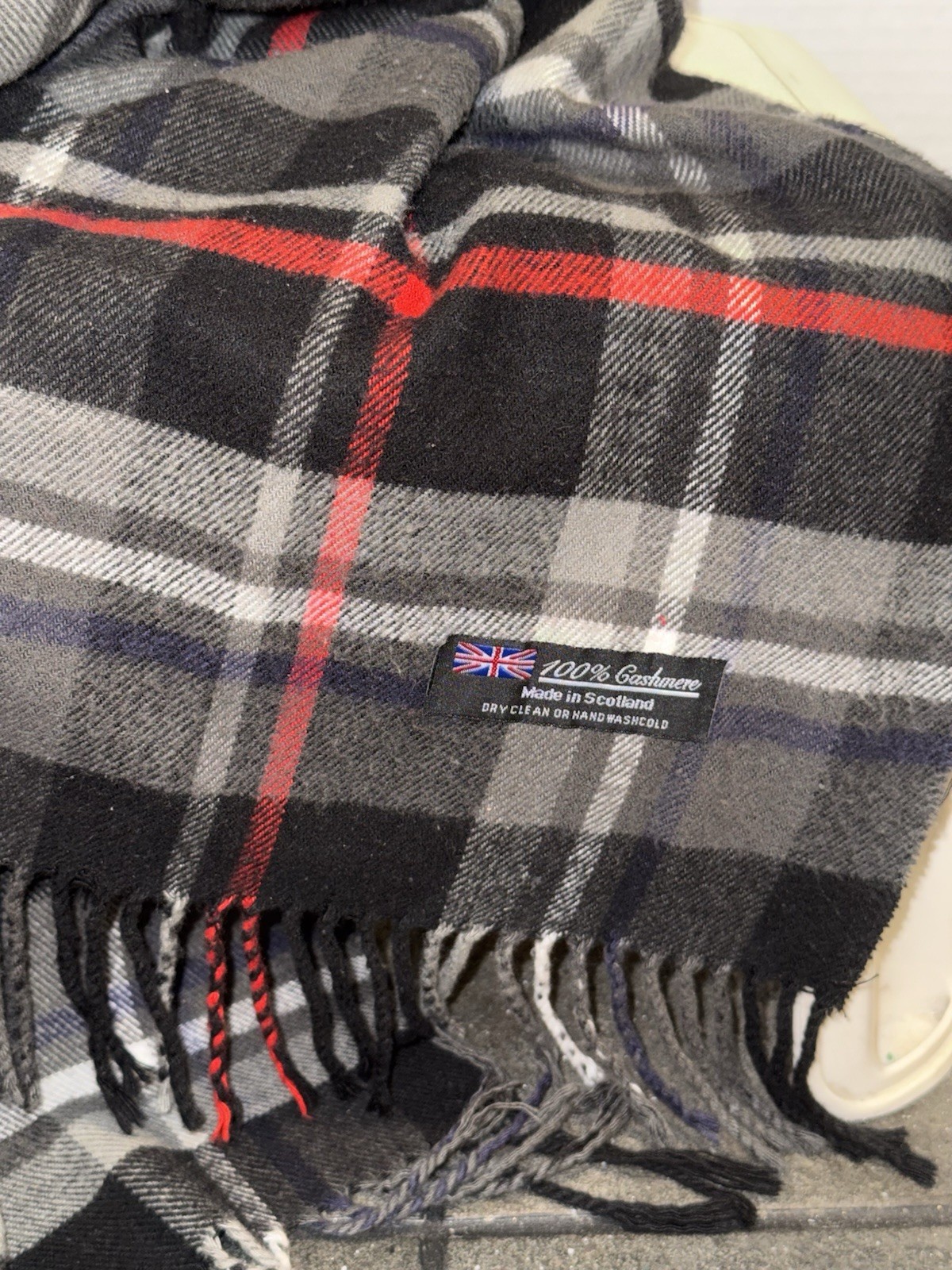 как выглядит Scotland Black Grey Tartan Plaid 100 Cashmere Scarf фото