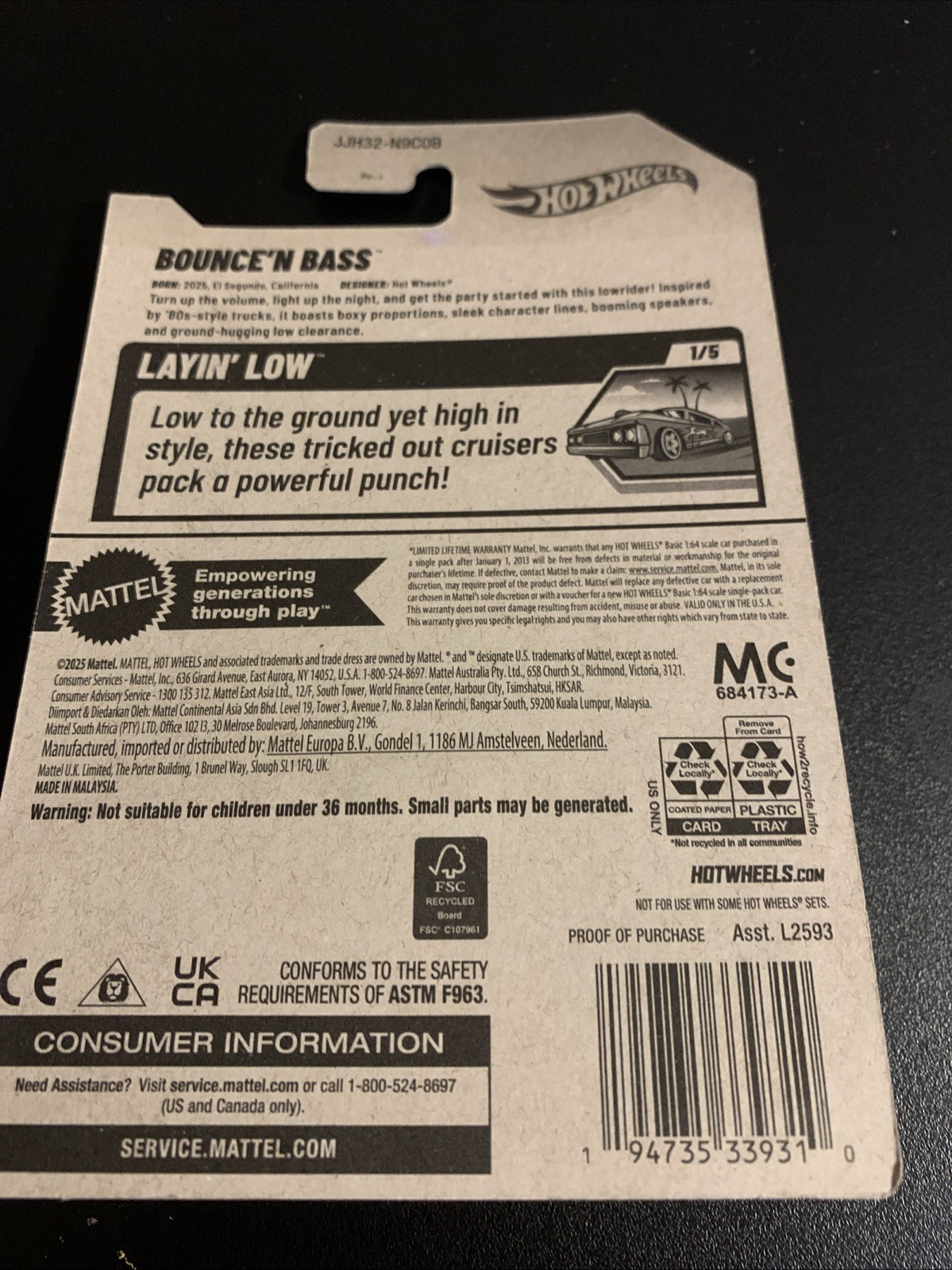 Hot Wheels 2026 Bounce'n Bass 17/250 Layin Low 1/5