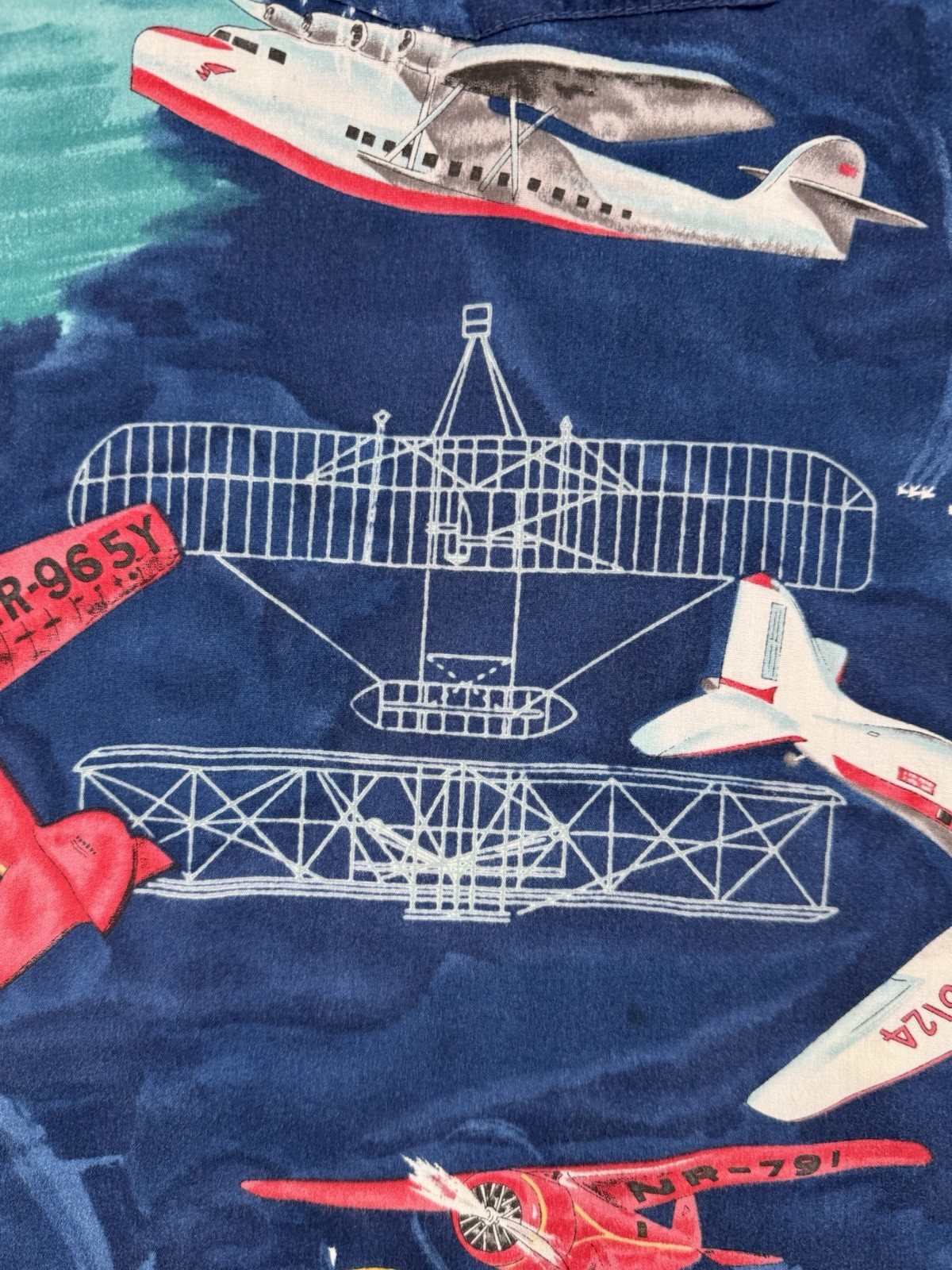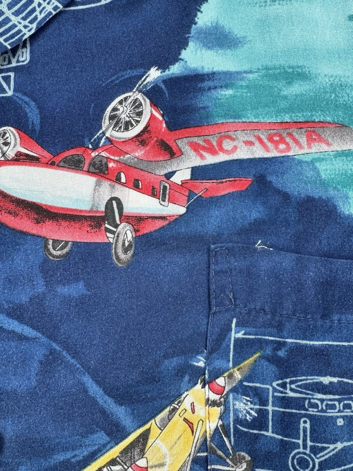 Vintage Hawaiian Airplane Shirt Aircraft Print Button Up Short Sleeve