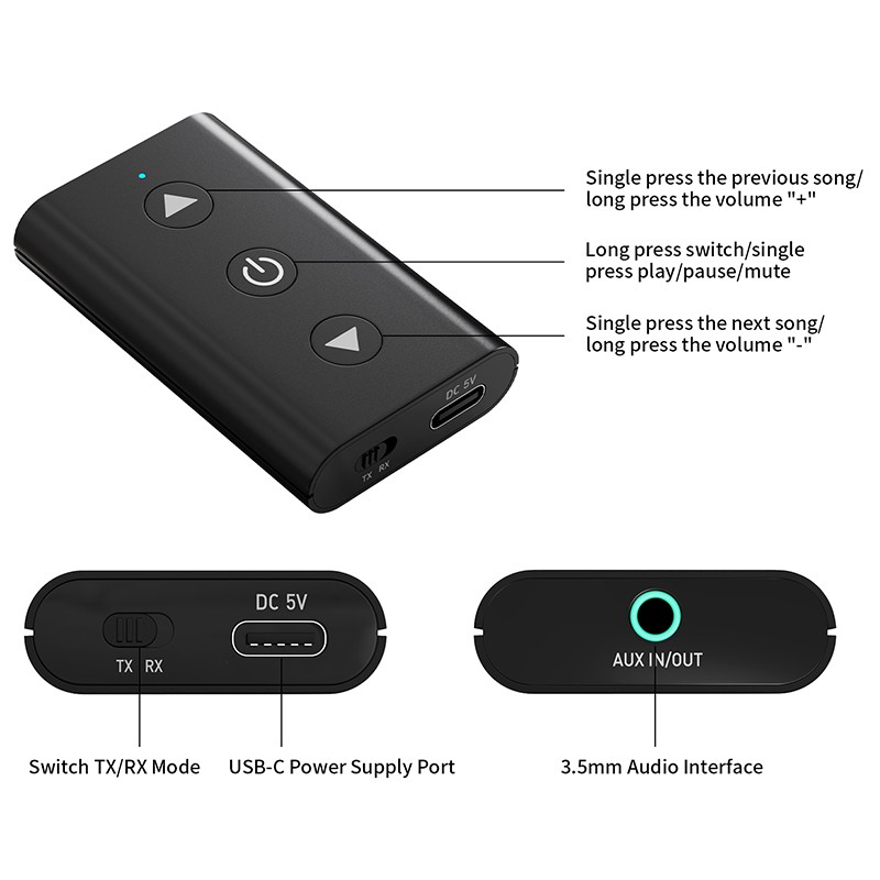 GTMEDIA 2in1 Bluetooth 5.1 Transmitter Receiver Wireless Adapter TV Home Audio