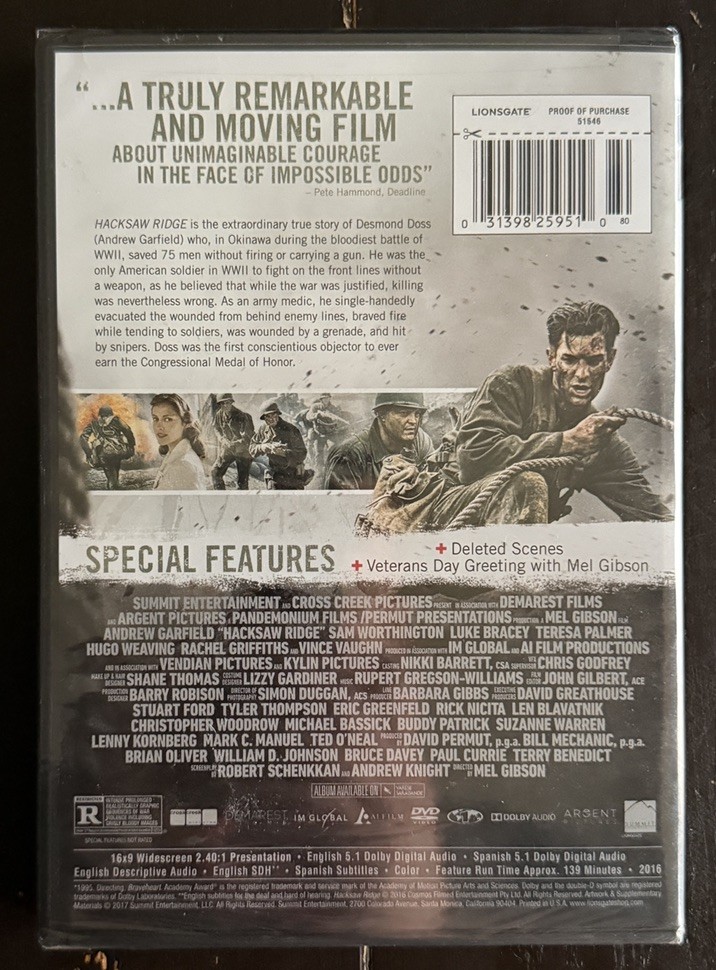 Hacksaw Ridge DVD